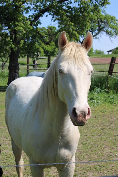 Jack Pine Forever - ein gesunder, gut gebauter Paint Horse Wallach, geboren am 31. März 2023, in einer seltenen smoky cream solid Farbe mit zwei strahlend blauen Augen - ein echter Hingucker! Mit einem aktuellen Stockmaß von ca. 147cm zeigt er sich harmonisch bemuskelt, robust und bestens proportioniert. Sein Charakter macht ihn zu etwas ganz Besonderem: zutraulich, verschmust und menschenbezogen, zeigt er sich von Anfang an freundlich und lernwillig. Im Umgang ist er brav, unkompliziert und aufmerksam, kennt Tierarzt- und Hufschmiedbesuche, ist regelmäßig entwurmt und mit Offenstall- sowie Weidehaltung bestens vertraut. Jack Pine Forever bringt bereits das Fohlen-ABC mit und wird vorsichtig anlongiert, wodurch er sich ideal als Jungpferd zum Selberausbilden eignet. Seine solide Allround-Abstammung, 5-Panel n/n über die Eltern und volle Paint Horse Papiere machen ihn zu einem vielseitigen Freizeitpartner, der später in vielen Bereichen Freude bereiten wird. Dieses coole Jungpferd verbindet Gesundheit, Charakter und Schönheit - perfekt für alle, die ein zuverlässiges, lernwilliges und auffälliges Pferd suchen. Jack Pine Forever wartet darauf, gemeinsam mit seinem neuen Menschen zu wachsen und zu glänzen!