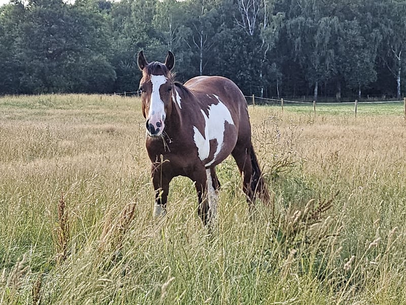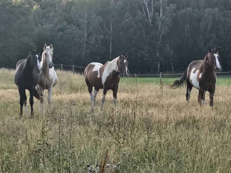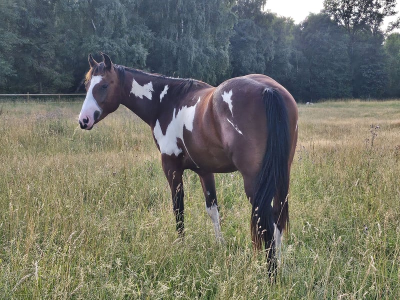 Wallach Alter geb.5/23 Rasse: American Paint Horse Fellfarbe: Bay overo Größe: ca. 152cm /Ausbildungsstand dem Alter entsprechen, anlongiert Wallachherdenhaltung, kein Training halfterführig, angebunden zum putzen, gibt Hufe, kennt Schmied und Tierarzt vom impfen. Wir verkaufen nur in professionelle Hände (Züchter, Landwirte, Reitlehrer,Reitstallbetreiber , Ausbilder , etc,.dabei kommt es nicht auf die Eintragung im Handelsregister an ) ,kein Verkauf an Privat Preis auf Anfrage Weitere Infos: Tel: 02403 29110