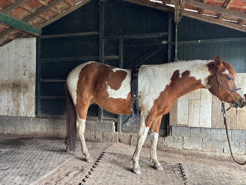 Dieser kompakte, selbstbewusste junge Hengst sucht eine Person, die mit ihm arbeiten möchte. Er lebt mit seiner Mutter und zwei älteren Pferden in einer Paddock in der Region Süd-Limburg, Niederlande, ca. 25 Minuten von Aachen und Lüttich entfernt. Seit dem ersten Tag wurde er regelmäßig bewegt und kindgerecht in den grundlegenden Dingen ausgebildet, die ein Pferd in seinem Alter kennen sollte. Er ist leicht an der Hand, lernt schnell und unternimmt mit seinem Trainer nur Spaziergänge. Er scheut weder vor noch zurück. Das Training besteht derzeit hauptsächlich aus Spaziergängen ohne andere Pferde, lockeres Mitlaufen, Gewöhnung an alles, was ihm begegnet, sowie täglichen Übungen wie Rückwärtsrichten auf leichte Anweisung, Schulter- und Hinterhandwendung. Er versteht auch die Grundlagen des Klickertrainings. Derzeit ist er rangmäßig Zweiter, daher ist es wichtig, dass er in eine Gruppe kommt, in der er nicht zu schnell aufsteigt – dafür ist er noch zu jung. Ein Spielkamerad zum Toben wäre ideal. Boxenhaltung kennt er nicht, und ich würde das auch für ihn nicht wünschen. In der Gruppe zeigt er sich insgesamt ruhig und kommt neugierig auf dich zu. Täglich wird er an der Hand geführt. Suchst du einen Lebenspartner fürs Leben und hast die Erfahrung sowie die Kompetenz, mit einem jungen Pferd zu arbeiten? Dann freue ich mich auf deine Kontaktaufnahme. Mit der richtigen Ausbildung und Geduld wird er zu einem perfekten Reitpferd. Er ist selbstbewusst und nicht ängstlich, muss aber noch weiter ausgebildet werden. Er ist momentan 1,50 m groß, wird aber noch wachsen. Geboren am 03.05.2023. Mutter: April Secret Moonfire, 5-panel negativ. Vater: Rolex Sparklin Pine, 7-panel negativ. Tobiano-Farbe, Fuchs. APHA-Zuchtbuch. Niederländischer Pass. Preis wie üblich für Rasse und Alter, auf Anfrage.