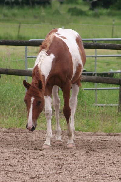 Beautiful Paint Stallion. Very friendly and people-oriented. Good basic gaits. Evenly drawn with 2 dark eyes. Father is licensed at the PHCG. Dam is also awarded as the champion mare of the breed show. In the pedigree there are sires such as Merada Chex, Doc Chex, Yellow Mount, Sugar Bars, Doc Quixote and Smart Chic O Lena. Grows up in herds. 5Panel test by parents With PHCG passport and American papers. Please contact us by phone at 0175/7217229
