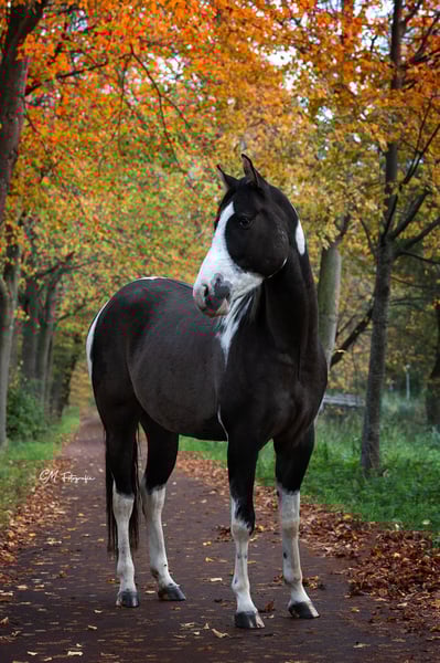 Chip ist ein schöner dreijähriger Paint Horse-Hengst mit einer Stockmaß von etwa 1,55 m. Er kennt das Reiten, wurde jedoch aufgrund von Zeitmangel nicht weiter ausgebildet. Er ist jedoch mit Bodenarbeit und Longieren vertraut. Chip ist von Natur aus sensibel und kann in neuen Situationen etwas ängstlich sein. Daher passt er am besten zu einem ruhigen, ausgeglichenen und geduldigen Reiter, der ihm Vertrauen schenken und konsequent mit ihm arbeiten kann. Mit der richtigen Begleitung wird er sich zu einem zuverlässigen Partner entwickeln. Beim Hufschmied ist er brav, und er wurde vollständig röntgenologisch untersucht. Derzeit besitzt er keine APHA-Papiere, diese können auf Wunsch beim Züchter nach ihren Bedingungen beantragt werden.