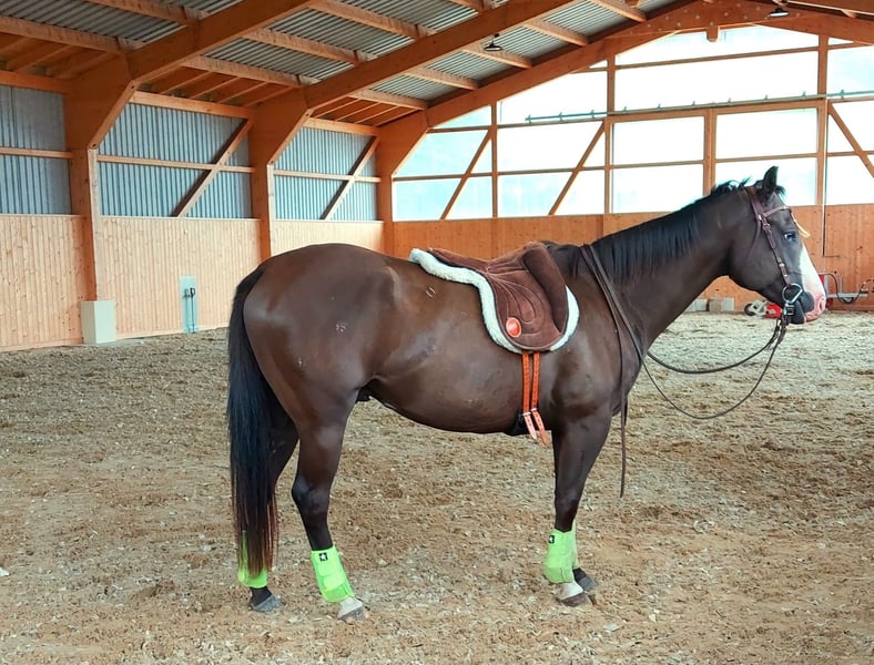 READY TO START “RCR Black Jack” has just turned 4 years old, a promising Paint Horse gelding (APHA) in the special color smoky black overo (a/a, E/e, nd2/nd2, CR/n, LWO/n). Blacky has nerves of steel, is curious, always willing to please, and is very people-oriented. When he trusts his person, he will do anything for them. He is very easy to handle in all everyday situations, making interactions with him very simple and pleasant. Description: - Paint Horse gelding, 4 years old, approx. 1.51m tall, color: smoky black overo - APHA papers and E-pass - Detailed health genetics via stallion, 6-panel test, DNA profile - Teeth freshly done, regularly vaccinated + dewormed - Versatile with a special talent for extreme trail obstacles - Solid basic training: Natural Horsemanship, groundwork, lunging, long lining, desensitization. - Knows rider weight and initial steps under saddle, always cooperative and eager to do everything right - Can also be handled by children - Loads easily onto the trailer and travels calmly alone - Stands quietly for the farrier (wears front shoes) and for the vet (vaccinations), he has never been sick here - Familiar with all equine everyday situations such as tying, grooming, deworming, traffic, tractors, dogs, etc. - Blacky has NO vices - No box confinement desired! You are buying directly from the breeder! Our Red Color Ranch is located in southern Mecklenburg. We have been successfully breeding pleasant equestrian partners for leisure and sport for many years. We specialize in the raising/education/training of foals and young horses. All horses live in a natural environment on large pastures with open stabling and are handled daily. The foals live with their mother mares until they reach sexual maturity, after which the stallions move to a gelding group. The mares remain in the original herd. This method of upbringing produces well-socialized horses that are completely clear-headed. In daily handling, the foals already learn to be tied, led, give their hooves, and be shod. Detailed preparation for riding begins at three years old, with training starting at the earliest at four years old. A veterinary examination can be commissioned at the buyer's expense. Please understand that written inquiries cannot be answered due to time constraints. If you are interested, please call 0174 9701525.