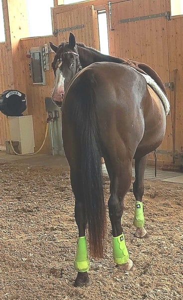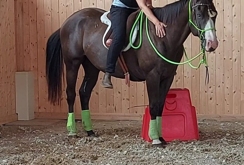 PRÊT À COMMENCER „RCR Black Jack“ vient d'avoir 4 ans, un prometteur hongre Paint Horse (APHA) de couleur spéciale smoky black overo (a/a, E/e, nd2/nd2, CR/n, LWO/n). Blacky a des nerfs d'acier, est curieux, a toujours la volonté de plaire et est très attaché aux humains. Lorsqu'il fait confiance à son humain, il est prêt à tout pour lui. Dans toutes les situations quotidiennes, il se laisse très bien manipuler, ce qui rend son entretien très simple et agréable. Description : - Hongre Paint Horse, 4 ans, environ 1,51 m de haut, couleur : smoky black overo - Papier APHA et E-Pass - Génétique de santé détaillée via Étalon, test 6 panneaux, profil ADN - Dents fraîchement faites, vacciné et vermifugé régulièrement - Élevé comme cheval polyvalent avec un talent particulier pour les obstacles d'extrême-trail - Formation de base solide : Natural Horsemanship, travail à pied, longe, double longe, désensibilisation. - Connaît le poids du cavalier et les premières étapes sous le cavalier, toujours coopératif et désireux de bien faire - Peut également être manipulé par des enfants - Monte facilement dans le van et voyage également détendu seul dans le van - Reste calme chez le maréchal-ferrant (fer à l'avant) et chez le vétérinaire (vaccination), il n'a jamais été malade ici - Connaît toutes les situations quotidiennes des chevaux comme par exemple être attaché, être brossé, être vermifugé, circulation routière, tracteurs, chiens, etc. - Blacky n’a AUCUN défaut de comportement - Pas de boxe souhaitée ! Vous achetez directement auprès de l'éleveur ! Notre Red Color Ranch est situé dans le sud de la Mecklembourg. Nous élevons ici depuis de nombreuses années des partenaires de loisirs équins agréables, qui sont également intéressants pour le sport. Nous sommes spécialisés dans l'élevage/éducation/formation de poulains et de jeunes chevaux. Tous les chevaux vivent en plein air dans de grands pâturages avec un abri ouvert et sont tous manipulés quotidiennement. Les poulains vivent jusqu'à la maturité sexuelle dans le troupeau de juments, puis les étalons sont transférés dans un groupe de hongres. Les juments restent dans le troupeau d'origine. Ce type d'élevage produit des chevaux bien socialisés qui ont l'esprit clair. Dans le cadre de leur manipulation quotidienne, les poulains apprennent déjà à être attachés, à être conduits, à donner leurs sabots et à voir le maréchal-ferrant. Ce n'est qu'à trois ans que la préparation détaillée pour devenir cheval de selle commence et la formation peut débuter au plus tôt à quatre ans. Une AKU peut être commandée à vos frais. Merci de votre compréhension, les demandes écrites ne seront pas répondues pour des raisons de temps. Si vous êtes intéressé, appelez simplement le 0174 9701525.