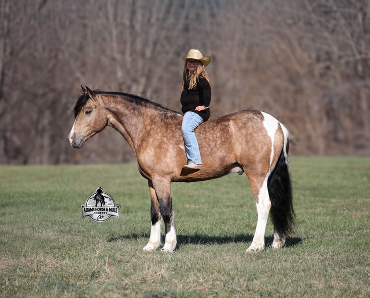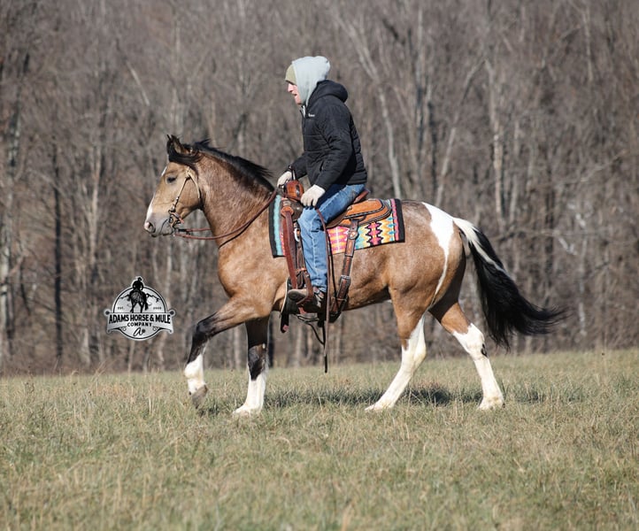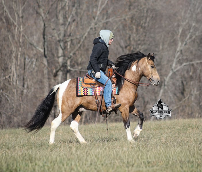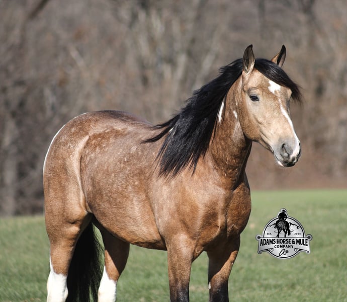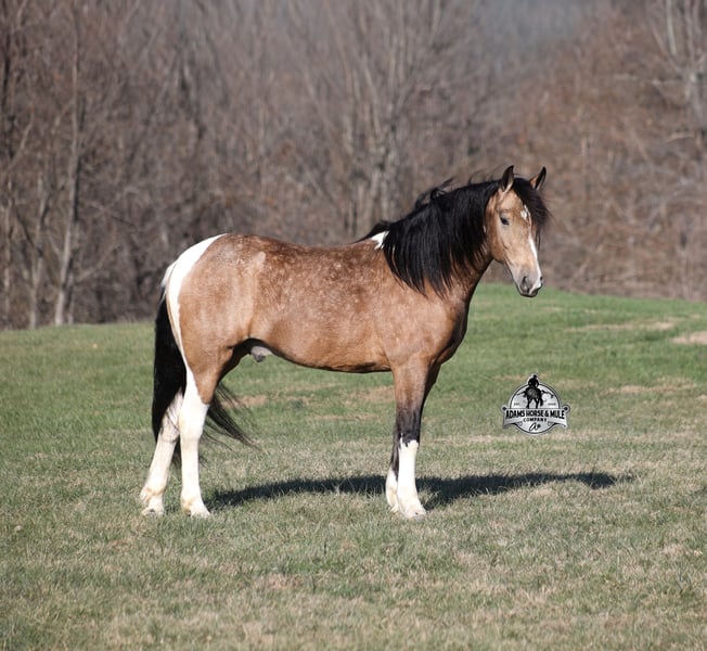 𝐀𝐝𝐚𝐦'𝐬 𝐇𝐨𝐫𝐬𝐞 & 𝐌𝐮𝐥𝐞 𝐂𝐨𝐦𝐩𝐚𝐧𝐲'𝐬 ✷𝑬𝒗𝒆𝒓𝒚 𝑴𝒊𝒍𝒆 𝑨 𝑴𝒆𝒎𝒐𝒓𝒚✷ 𝐄𝐗𝐂𝐋𝐔𝐒𝐈𝐕𝐄 𝐒𝐀𝐋𝐄 Happening now thru MONDAY | FEBRUARY 2nd - Available EXCLUSIVELY on HorseBid's website! For more details and to register visit: www.Horsebid.com CONSIGNOR CONTACT: Adams Horse and Mule Company 606-308-2461 LOCATION: Mt. Vernon, KY BREED: Paint QH REGISTERED: No COLOR: Dapple Buckskin Paint HEIGHT: 14.3 AGE: 5 GENDER: Gelding This is NOT the SLT version this is a Denali... all the chrome, fancy wheels, all the buttons and of course NAVIGATION! Denali is a dream come true! This dapple buckskin paint beauty is very well built, standing around 14.3hh and he is 5 years old. Denali is a slow and easy trail horse deluxe! He will get you from point A to point B with no troubles, it might not be in record time as he is never in a hurry but safety is his top priority! Denali is a gentle and very laid back type of horse. He has the softest slow lope, lopes nice circles, catches the correct leads, has a good stop and reins around. He eases along down the trail and loves going on trail rides. He will cross creeks, ditches, logs and navigate rough rocky areas. He has been exposed to all kinds of wildlife and will go anywhere that he is asked too. He has been ridden many miles in the mountains and encountered every obstacle possible on the trail. He will go up or down even the steepest slopes, across deep creeks, over downed trees, and over all types of rough terrain while still being sure footed. Denali has been ridden down the highways and is traffic safe. If you want friendly, safe, experienced and one that the family will love… don't buy the basic SLT, get the DENALI! Call Eric 606-308-2461 with any questions.