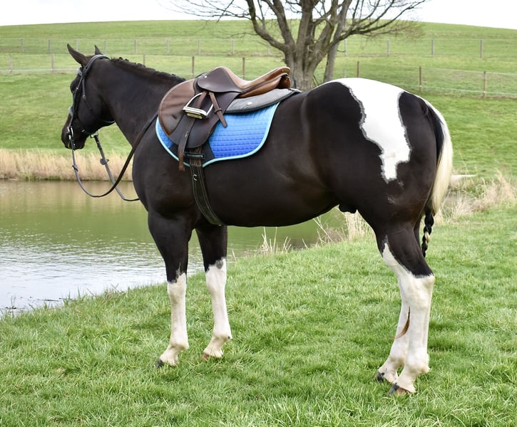 ⚜️𝐭𝐡𝐞 𝓔𝓵𝓲𝓽𝓮 𝐒𝐩𝐫𝐢𝐧𝐠 𝐂𝐥𝐚𝐬𝐬𝐢𝐜⚜️ Happening now thru MONDAY | APRIL 20th - Available EXCLUSIVELY on HorseBid's website! For more details and to register visit: www.Horsebid.com CONSIGNOR CONTACT: Twilight Farms / Kristin Mulhall 740-552-9538 LOCATION: Fresno, OH BREED: Paint REGISTERED: No REGISTERED NAME: Maverick COLOR: Black and White HEIGHT: 14.3 AGE: 5 GENDER: Gelding Maverick is a striking 5-year-old nearly black and white gelding standing just under 15 hands, offering the perfect blend of eye appeal, athleticism, and a solid foundation. He is the type that grabs your attention immediately with his sharp looks and confident presence, yet he remains sensible, willing, and enjoyable to have around every day. Under saddle, Maverick is well broke with a soft feel in the bridle and a responsive, willing attitude. He works comfortably off leg and rein, has smooth transitions, and carries himself naturally with a balanced and attractive headset—making him especially enjoyable for English riding. He is also comfortable and user-friendly, giving his rider a confident and enjoyable experience each time in the saddle. Maverick has even been ridden bridleless, demonstrating the level of training, trust, and connection he has with his rider. Maverick has not been limited to arena work—he has been brought along the right way with consistent exposure to real-life situations. He has been extensively trail ridden through the summer and fall, and throughout the winter he has stayed in steady work with arena rides and driving miles when weather allowed. He is very well started to drive and handles himself confidently both in harness and under saddle. Out on the road, Maverick is traffic safe and takes everyday activity in stride. Whether riding down the road or driving, he remains level-headed and confident, proving himself to be a practical and versatile horse that can step into a variety of programs. Adding even more value, Maverick is as fun as he is functional. He is trick trained and knows how to lay down and sit on a bean bag, making him a standout with personality and something the whole family can enjoy. Maverick is up to date on deworming, vaccinations, dental care, and farrier, and he has a current Coggins. He is a well-rounded gelding with the looks, training, and versatility that make him a standout in any program. Please Note: Photos showing Maverick as a faded brown were taken in February shortly after he was body clipped. His current conformation photos, taken April 2nd, accurately reflect his true dark coloring.