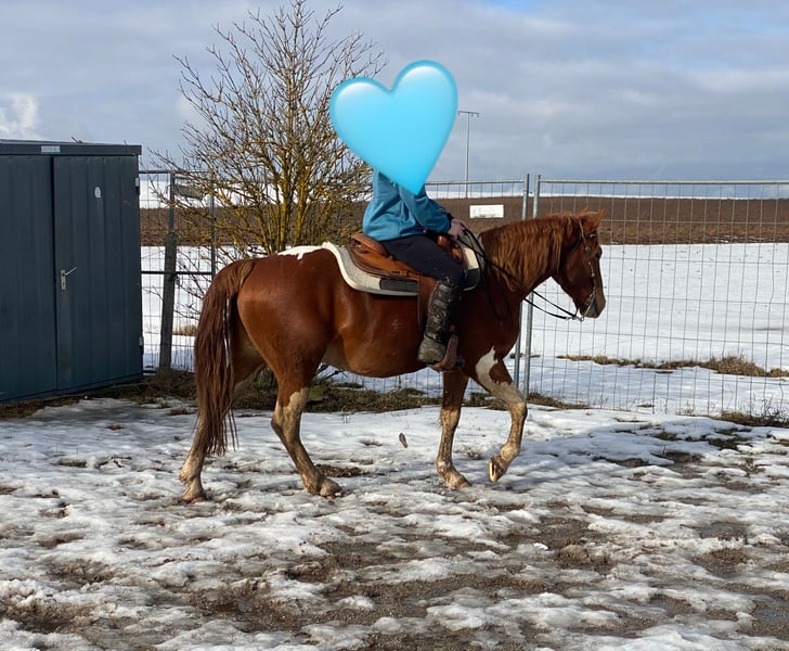 For sale is this wonderful, gentle, and reliable Paint Horse cross gelding, "Smart Sony." Smarty is 5 years old, approximately 15.3 hh, and impresses with his balanced temperament and impressive build. He is absolutely trail-safe and truly the definition of a perfect riding horse for outdoor adventures! Additionally, he is well-versed in versatile work on the riding arena, ground work, walks, and longer trail rides. Smarty is healthy, regularly vaccinated and dewormed, and is ridden by both teenagers and adults in all three gaits. He is also compatible with other horses, lives in a mixed herd during the day and is stabled at night, with turnout in an open stall as well known to him. Thanks to his compact build and calm, brave nature, Smarty is truly a leisure partner for fun and enjoyment! If interested, please feel free to contact us at 01776853138.
