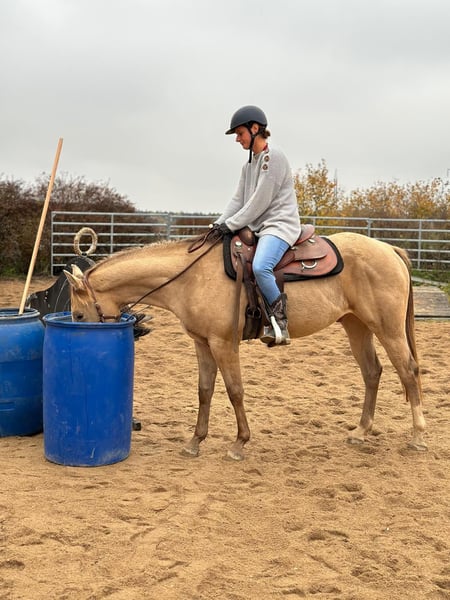 A young Paint Horse gelding with an exceptional champagne color is offered for sale. Backed after the age of three and only lightly ridden so far due to the owner’s pregnancy. Despite limited riding, he has a very solid foundation and excellent preparation, especially from the ground. Under saddle he is basically started (walk, trot, canter). His real strength lies in his groundwork, which includes: natural horsemanship mountain trail obstacles basics of academic in-hand work He is calm, brave, and mentally very well-balanced. In the field and on trails he is confident and unflappable – water and other “scary objects” are not an issue. Due to his young age, he is not yet suitable for small children to ride independently, but in the future he will make an excellent family horse or a perfect first competition horse for an amateur rider. He comes from proven, successful bloodlines. His dam is a multiple All-Around Champion under the WRC association (comparable to German EWU or Austrian AWA). Thanks to his conformation, mindset, and training, he would also be suitable for Working Equitation. He has been kept in outdoor housing since birth, is hardy, and grows a beautiful, thick, healthy winter coat. He is an easy keeper, regularly vaccinated, has had his teeth done, and has a negative Coggins test. Both parents are panel test negative. He has often been ridden bitless and was also started that way. The attached video shows a training session where he is ridden by a beginner with approximately six months of riding experience. Photos are from inside arena are made in his 2 yro age during Mountain trail clinic. Offered for sale solely due to the owner’s pregnancy. We are looking for a calm, long-term home where he can continue to develop his potential.