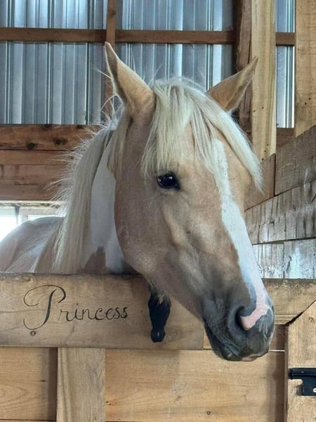 Meet this absolutely stunning Palomino Pinto Mare – a true head-turner with beauty and brains! With her eye-catching golden and white markings and a flowing flaxen mane and tail, she commands attention wherever she goes. But her appeal goes far beyond her gorgeous looks. This lovely mare boasts excellent basic gaits – smooth, comfortable, and a joy to ride, making every stride a pleasure. Her likely stock horse lineage (suggesting an American Paint Horse background) gives her the inherent athleticism, intelligence, and willing temperament to excel in a wide array of disciplines. Whether you dream of gliding through a Western Pleasure pattern, confidently navigating obstacles in a Trail Class, or showcasing her agility in Ranch Riding, she has the natural talent to shine. She also possesses the potential for Reining maneuvers, showcasing quick turns and responsive stops. Beyond the show ring, her calm and sensible nature makes her an ideal partner for leisurely trail rides or simply enjoying quiet time in the arena. She's the kind of versatile horse that can truly be an all-around mount, adaptable for both aspiring youth and experienced amateur riders. If you're looking for a mare with striking looks, comfortable gaits, and the ability to excel in diverse roles, this Palomino Pinto beauty is truly exceptional. Don't miss the chance to welcome such a talented and versatile companion into your life!