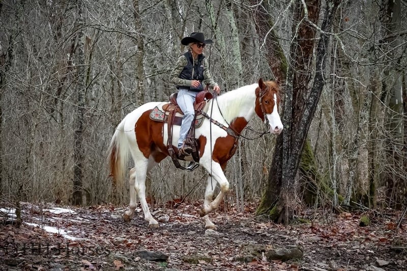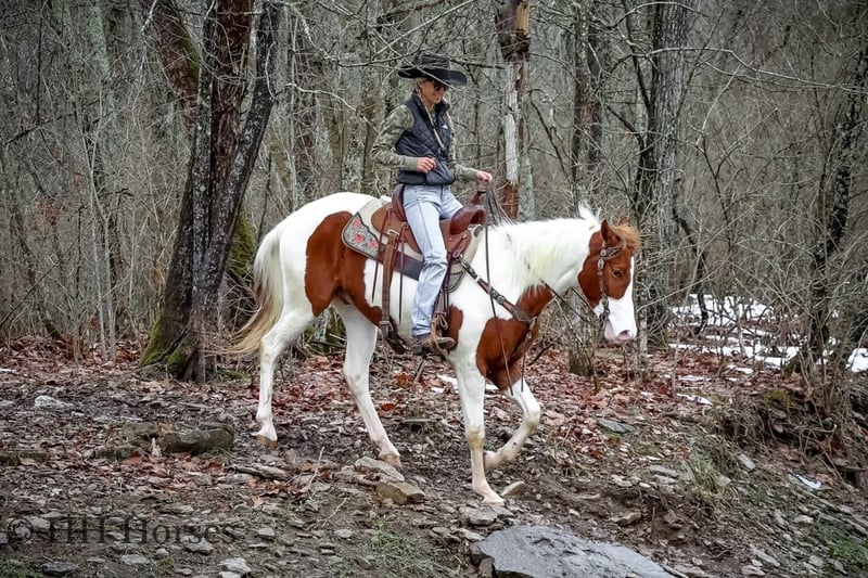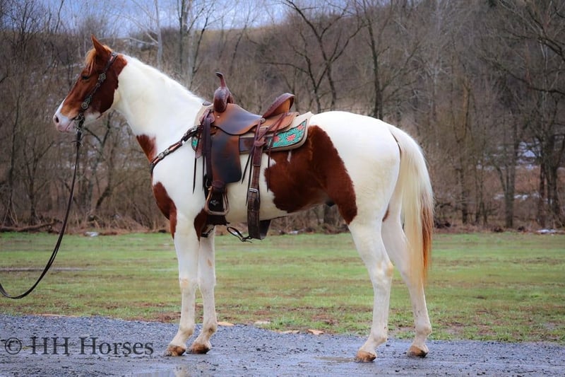 ONLINE AUCTION Place your bids at www.PlatinumEquineAuction.com Starting Bid $3500 Auction ends February 16th, 2025 Need a new saddle? Check out White Rock Saddles on our website or Facebook! This is “MACARONI”, a big 16 hand SORREL & WHITE TOBIANO PAINT GELDING that is 4 years old. This nice young gelding has been on the trails and ridden in the arena English and Western. He has been out in the woods, through the water, and up and down the rocky embankments. He is a smart, big, young horse with lots of natural ability and sense. He would excel in any performance discipline and he is well on his way to be a great trail mount. He goes out alone, been on the main roads, and has a nice way of traveling. He aims to please and will ride in the snow, ice, and mud without an issue. He bathes, hauls, stands tied, and loads ONLINE AUCTION Place your bids at www.PlatinumEquineAuction.com Starting Bid $3500 Auction ends February 16th, 2025 Need a new saddle? Check out White Rock Saddles on our website or Facebook! with no fuss. Located in Flemingsburg, KY. Contact HH Horses Erin 304-238-4155.