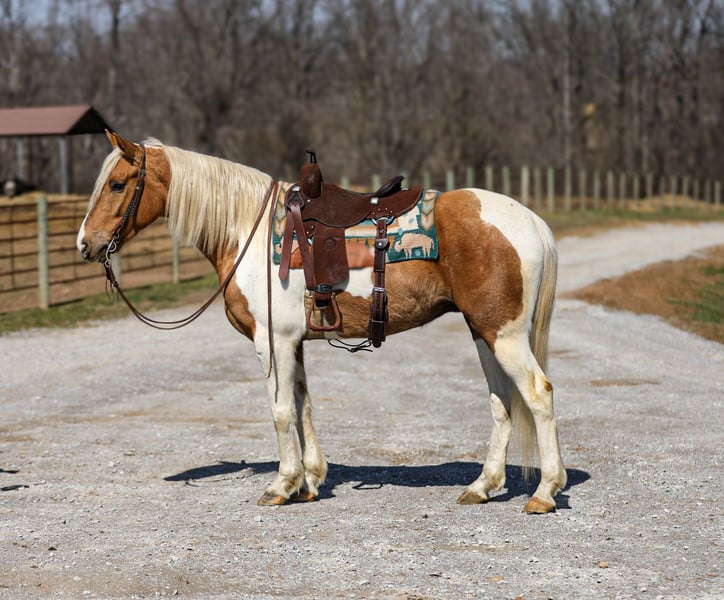 Cheval de selle de 6 ans, Palomino et Paint blanc, hongre de 15,1 mains