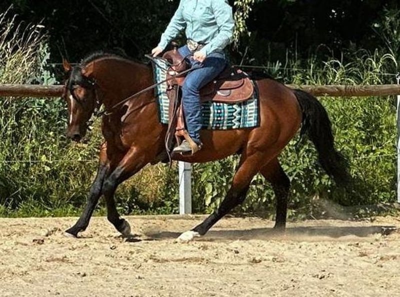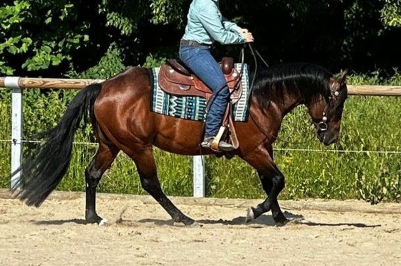 CH Gringo - this impressive Paint Horse gelding, born in 2019 with a height of 152 cm, captivates not only with his fascinating bay color but also with his strong and very correct conformation as well as his top pedigree. He was the champion stallion of the PHCG inspection in 2024. In 2025, he was gelded. Gringo has a friendly character, is affectionate, well-behaved, and trusting. The gelding is familiar with 24/7 pasture as well as box and open stable housing. He is 6-Panel n/n. He possesses a very good Western training in the direction of reining and already has show experience. He is currently back in professional training and is being shown. He is also familiar with trail riding. Gringo is very talented and provides a lot of fun under the saddle. He is a grandson of Gallo Del Cielo. On the maternal side, he is bred from Andy Poco and Skips Chore. The gelding already has great offspring. Gringo is a fantastic eye-catcher for use in sports and as a leisure companion. He will only be placed in the best hands.