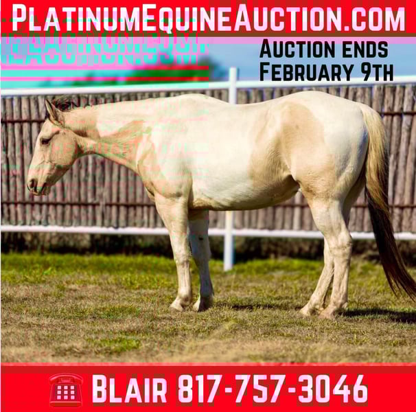 ONLINE AUCTION Place your bids at www.PlatinumEquineAuction.com Starting Bid $3500 Auction ends February 9th, 2025 Need a new saddle? Check out White Rock Saddles on our website or Facebook! Alfie is one of our most favorite horses, standing at 14.2H and 7 yrs old, he’s the perfect height AND perfect age for everyone! Not to mention, he’s a GORGEOUS buckskin paint! Alfie has such an AMAZING personality and he is extremely gentle. He’s been primary used as a western AND english lesson horse for all ages. He absolutely knows how to operate to the riders ability. He’ll take care of some of the babiest of beginners without one wrong step and he’ll move out and ride around more free for the advanced riders! He’s very comfortable to ride and will make you want to ride all day long with how fun he is! He is as honest as they come and only wants to please! Alfie is easy to ride, will neck rein, direct rein, move off leg and he stops exactly when you ask him to! He does great with time off and never offers to buck, bolt or rear! He’s proven safe and sane! He’s extremely easy to get along with, ties great, loves to be brushed and loved on, loads and hauls well, stands great for farrier and all the above! The second we swung a leg over him, he became the barn favorite! Safe and gentle is our niche, but it’s rare to find a younger horse with his experience and ability to adapt to the level of his rider! Not only that but, buckskin paints are few and far between and it’s not often they are sane and beginner gentle too! Someone is about to get their dream horse and those who are shopping for color but need gentle, absolutely don’t want to miss Alfie! More pics and videos on his website page at northtexashorsecompany.com/alfie. Please call Blair with North Texas Horse Company for more info at 817-757-3046. We are located in Weatherford, TX and can help arrange affordable shipping to anyone!! ONLINE AUCTION Place your bids at www.PlatinumEquineAuction.com Starting Bid $3500 Auction ends February 9th, 2025 Need a new saddle? Check out White Rock Saddles on our website or Facebook!