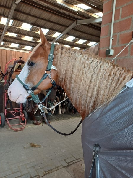 Te koop: Amerikaanse Paint Horse ruin, geboren in april 2018, voskleur, met een stokmaat van ongeveer 150 cm. Dit veelzijdige paard begeestert door zijn evenwichtige en vriendelijke aard, evenals zijn indrukwekkende uitstraling en kleur. De ruin is opgeleid in reining en heeft succesvol geshowd in de open en NonPro NRHA tot 2024. Vanwege een langere blessurepauze is hij sinds oktober 2025 weer langzaam terug in training en wordt hij vooral allround gereden. Hij beschikt over een uitzonderlijk goede gangenbeeld met ruime draf, waardoor hij goed geschikt is voor ranch disciplines. Ook in trail toont hij zich zeer talentvol en zonder schuwheid. In het terrein is hij tot nu toe slechts zelden geweest, maar ondanks dat hij alleen reed, deed hij dat zeer braaf en zonder ongewenste gedragingen. Ook aan de hand en aan de longe is hij altijd een schat. Hij vertoont een spatbandaandoening linksachter, die nog niet volledig verbenigd is, maar hem weinig problemen bezorgt. Vanwege de inmiddels genezen aandoeningen (fesseltragerschade linksachter, knieontsteking linksachter en ontsteking van het fesselgewricht beide kanten) zou ik willen dat hij niet meer permanent in NRHA reining wordt ingezet, maar eerder geshowd wordt in EWU. Daarom wordt hij ook onder de marktwaarde verkocht. Dankzij zijn degelijke basisopleiding en aangename karakter is hij geschikt voor zowel recreatieve ruiters als ambitieuze westernliefhebbers. In mijn ogen is hij echter geen beginnerspaard, omdat hij enige zekerheid en fijngevoeligheid van de ruiter vereist. Ook het laden in een gewone trailer moet nog worden verbeterd, aangezien hij alleen gewend is aan transport in een transporter of vrachtwagen. Hij is momenteel onbespannen en wordt niet getraind voor reining, daarom zijn er geen actuele video's van de sliding stop. Een betrouwbare partner die door zijn veelzijdigheid en aangename aard overtuigt. Bij interesse sta ik graag klaar voor meer informatie en een bezichtiging.