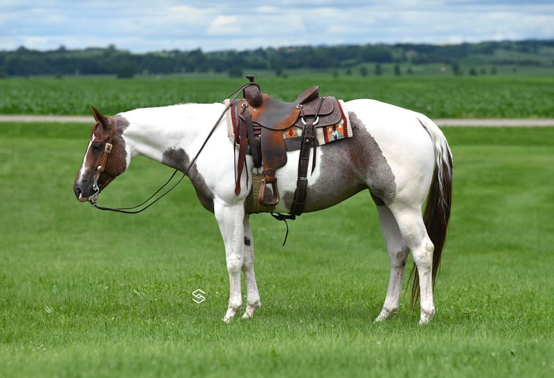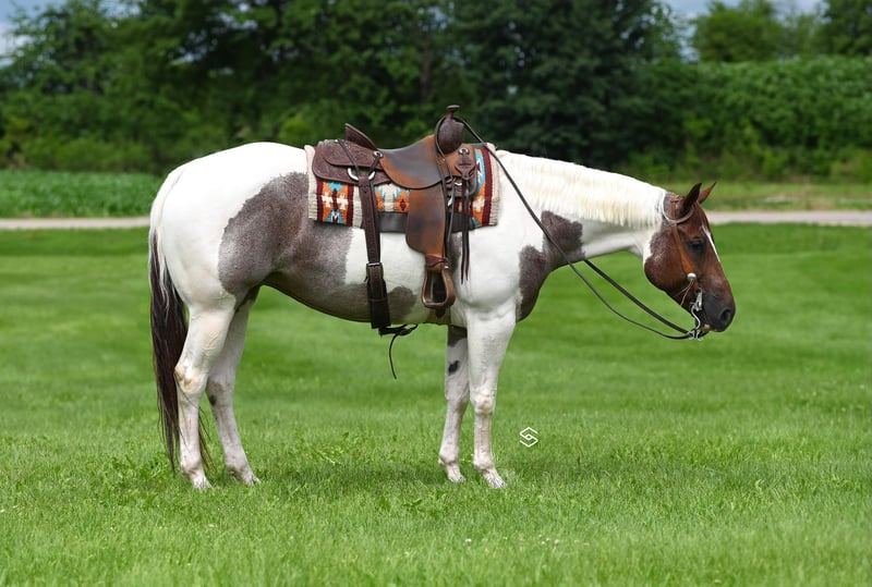ONLINE-AUKTION Geben Sie Ihre Gebote unter www.PlatinumEquineAuction.com ab. Startgebot $3500 Die Auktion endet am 21. Juli 2024 Brauchen Sie einen neuen Sattel? Schauen Sie sich White Rock Saddles auf unserer Website oder Facebook an! Werfen Sie einen Blick auf dieses wunderschöne Mädchen, das wir "Lady" nennen. Diese Stute ist 15,1 Hände groß und hat all die Klasse, die man sich von einem Pferd erhoffen kann. Sie ist 6 Jahre alt und sowohl bei der APHA als auch bei der Pinto Horse Association registriert. Sie wurde in Pleasure-Klassen und beim Ranch Riding vorgestellt. "Lady" reitet im Push-Button-Stil und hat ein Verhalten, das der ganzen Familie gefällt. Sie ist die Art von Pferd, die Ihnen jedes Mal ein Lächeln ins Gesicht zaubert, wenn Sie den Stall betreten. Ihre Persönlichkeit ist lebenslustig und sie will nichts anderes, als einfach nur gut drauf sein. Wenn Sie einen Tag der Freizeit genießen wollen, laden Sie sie einfach auf und gehen Sie auf die Pfade. Sie ist sehr vielseitig und reitet sowohl innerhalb als auch außerhalb des Reitplatzes sehr gut. Was ich an dieser Stute so liebe, ist, dass man sich nicht um sie kümmern muss. Sie hat keine Vorgeschichte von Verletzungen oder Lahmheiten und benötigt keinen speziellen Hufbeschlag. Sie werden diese Stute absolut lieben, nutzen Sie die Gelegenheit, dieses besondere Pferd zu besitzen. Sie befindet sich in Lakeville, MN. Kontaktieren Sie Lauren Leslie 619-905-1323 bei Fragen. ONLINE-AUKTION Geben Sie Ihre Gebote unter www.PlatinumEquineAuction.com ab. Startgebot $3500 Die Auktion endet am 21. Juli 2024. Brauchen Sie einen neuen Sattel? Schauen Sie sich White Rock Saddles auf unserer Website oder Facebook an!
