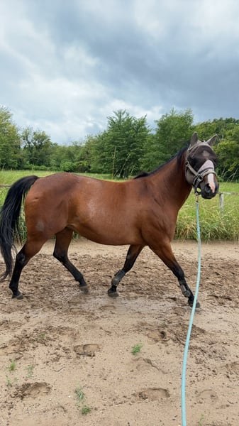 With a heavy heart and after careful consideration, I unfortunately have to sell my 10-year-old solid-colored Paint Horse mare "TCF Dela Zipp Peaches," short "Peaches," due to lack of time. She has unfortunately been absolutely underutilized for some time now and is therefore not in training. Her father is Deladraw Kenny and her mother is Zipps Missy. Pedigree is included in the pictures. About Peaches: Height approximately 152/153 cm. I have had her since she was 4 years old. I bought her untrained back then. I have started her myself with support. She has had a hay dust intolerance for 3 years. At least she coughs as soon as she eats dry hay. However, this is not noticeable when the hay is properly soaked or steamed. An inhaler is also available if interested and can be purchased for an additional fee. Peaches is ridden Western for leisure and can accommodate riders weighing 70, at most 75 kg, and a height of 170 cm due to her build and size. She has grown up in a free stall system. She has lived in a paddock box, a short time in a stall, and in a free stall with me. She has always been outside during the day. She does not know pure box housing or only a few hours outside, and I do not want that for her. If you are seriously interested, please send a message or call and leave a short message on the voicemail with your name and phone number. I will get back to you as soon as possible. 0152-22953125 Home before price.