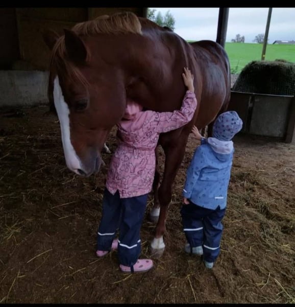 Great Paint Horse mare (2015) is looking for her new home as a cozy, reliable family riding horse. We could also imagine her for breeding. She has not had a foal so far, has a great all-round pedigree, and is 6 panel n/n. PEACHES was previously successfully shown and received high ratings at the breeding show. The beautiful mare is absolutely well-mannered and trained, is ridden and handled by children, can also be lunged with the little ones, lives in a paddock, is barefoot, and is familiar with short trail rides in the woods. We are looking for a place for her as a leisure and family horse for children or light riders, as she is unfortunately not very stress- and pressure-resistant (teeth grinding, no other vices - teeth done annually) and she is occasionally sensitive in the area of the sacroiliac joint (was injected once). When ridden in a halter, with low demands, or when being ridden by children, she does not show this behavior. Peaches loves groundwork, is uncomplicated, and super sweet... Far below value! Location: Upper Austria.