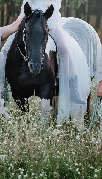 Straits Poco Sue - eine bildhübsche Paint Horse Stute, geboren 2016, mit einem Stockmaß von ca. 154 cm. Sie besticht durch ihre außergewöhnlich schöne black tobiano-Färbung, ist homozygot tobiano und besitzt ein korrektes, kompaktes Fundament. Charakterlich ist sie ein echter Schatz - ruhig, liebevoll und sehr menschenbezogen. Im Umgang zeigt sie sich stets freundlich und bemüht, alles richtig zu machen. Sie wirkt fast wie ein Kinderpony, da sie so gelassen ist und auch im Schritt und Trab problemlos von Kindern geritten werden kann. Sue wurde von einer Jugendlichen geritten und hat eine solide Westernausbildung. Sie ist geländesicher und zeigt sich unter dem Sattel aufmerksam und lernwillig. Im Galopp kann sie vor Freude hin und wieder einen kleinen Buckler zeigen, weshalb sie einen Reiter braucht, der konsequent, aber feinfühlig mit ihr umgeht. Wird sie korrekt gearbeitet, zeigt sie sich auch in der Gangart brav und kooperativ. Leider ist sie zurzeit nicht ausgelastet. Sie ist gesund, regelmäßig entwurmt, brav beim Tierarzt und Hufschmied und kennt sowohl Offenstall - als auch Boxenhaltung. Ihre Zuchtqualitäten sind ebenfalls hervorzuheben: Sie stammt aus einer guten Paint Horse Linie, war bereits Mutter und hat problemlos aufgenommen sowie ohne Komplikationen gefohlt. Ihre Nachzucht war stets korrekt und vielversprechend. Da leider die Zeit fehlt, ihr gerecht zu werden, wird für diese tolle, liebe Stute ein neues, wertschätzendes Zuhause gesucht - sei es in der Zucht, im Freizeitbereich oder beidem. Straits Poco Sue bringt alles mit, was man sich von einer zuverlässigen, freundlichen Partnerin wünscht.