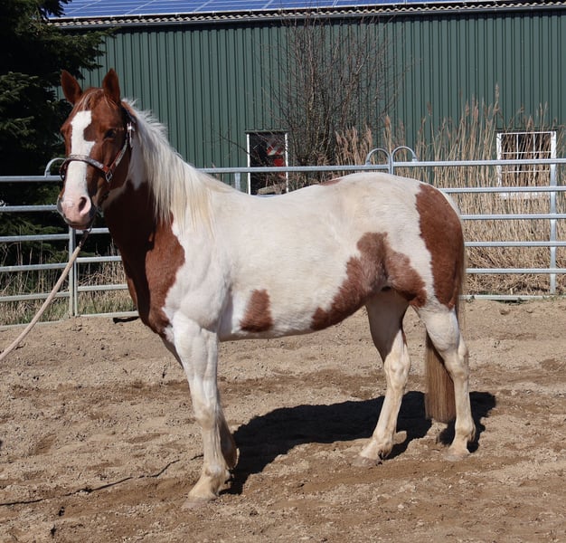 ⭐️Paint Horse Stute – 2015 – 1,48 m – Sensibler Rohdiamant – weiterer Beritt möglich⭐️ Im Auftrag verkaufen wir die wunderschöne Paint-Horse-Stute Dusty Lovely Doll („Jessi“) – Sorrel Tobiano, geboren am 07.04.2015, Stockmaß 1,48 m. Sie steht seit Februar bei uns auf der J.B. Silver Ranch in 25719 Barlt. Jessi ist eine feine, sensible und sehr menschenbezogene Stute, die sich eng an ihre Bezugsperson bindet. Sie ist ein Pferd, das noch unverbraucht ist und sich wunderbar individuell formen lässt – ein echter Rohdiamant für Menschen, die Wert auf eine solide, ruhige Grundausbildung legen. ⭐ Ausbildungsstand Jessi befindet sich bei uns aktuell in der Grundausbildung. Sie wird sorgfältig auf ihren weiteren Weg vorbereitet und zeigt sich dabei aufmerksam, fein und sehr lernbereit. Derzeit liegt der Fokus auf: • Bodenarbeit • Führtraining • Putzen & Handling • Vertrauensarbeit • Vorbereitung auf das spätere Reiten ⭐ Charakter & Haltung Jessi lebt im Aktivstall in einer Stutenherde, kennt aber auch die Paddockbox. Im Umgang ist sie lieb, höflich und bemüht, braucht aber eine sichere, ruhige Bezugsperson, daher nicht für Anfänger geeignet. ⭐ Gesundheit & Daten Letzte Zahnkontrolle im Januar • APHA-Papiere vorhanden • Mutter: Koy Dusty Three (Quarter Horse) • Vater: Drift in Bodyguard (Paint Horse) ⭐ Preis 8.900 € VB Jessi ist das perfekte Pferd für jemanden, der ein feines, sensibles und unverbrauchtes Pferd sucht, das man von Anfang an vertrauensvoll begleiten und weiter ausbilden möchte. Beritt und/oder langfristiger Einstellplatz kann bei uns gerne fortgeführt werden. Besichtigung nach Absprache möglich.
