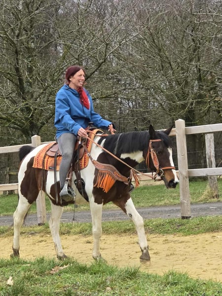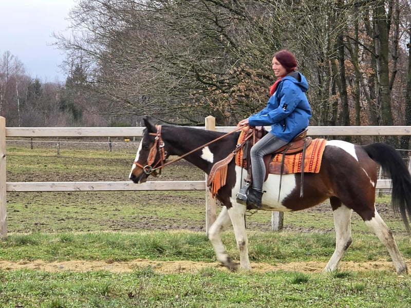 Freizeitstute – brav & zuverlässig Paint-Mix-Stute Belle Geb. 30.5. 2015 Alter: 11 Jahre Stockmaß: ca.1,52 Preis: 6500,- AKU: vorhanden ✨ Beschreibung: Diese tolle Stute überzeugt durch ihr ausgeglichenes, freundliches Wesen und ihre ruhige Art. Im täglichen Umgang zeigt sie sich brav, menschenbezogen und unkompliziert. Putzen, Führen sowie der allgemeine Stallalltag sind problemlos und angenehm. Unter dem Sattel ist sie rittig und vermittelt ein gutes Reitgefühl. Besonders im Gelände zeigt sie sich gelassen und zuverlässig. Sie geht entspannt ins Gelände, auch für längere Ausritte gut geeignet. Auf dem Reitplatz arbeitet sie motiviert. Durch ihre angenehme Art ist sie eine ideale Partnerin für den Freizeitbereich. Geeignet für: Freizeitreiterinnen und Freizeitreiter, die eine brave, geländesichere Stute suchen. Auch passend für entspannte Ausritte, leichte Platzarbeit und Wiedereinsteiger, die Wert auf ein ehrliches Pferd legen. Unsere Pferde werden regelmäßig: – entwurmt – vom Schmied betreut – osteopathisch kontrolliert Hofladen: Westernsättel, Trensen & Zubehör Transport und Equipment auf Wunsch günstig organisierbar Unser Service: ✅ 3 Monate Umtauschrecht ✅ Proberitt: 35 €, jedes weitere Pferd 25 € (beim Kauf am selben Tag angerechnet) ✅ 100 € Sofort-Rabatt bei Abholung oder Transport am gleichen Tag ✅ Persönliche & ehrliche Beratung Anfragen bitte ausschließlich telefonisch: 0171 – 4001968 Erreichbar täglich von 8–20 Uhr ⚠️ Keine E-Mail oder WhatsApp ⚠️ Alle Angaben ohne Gewähr