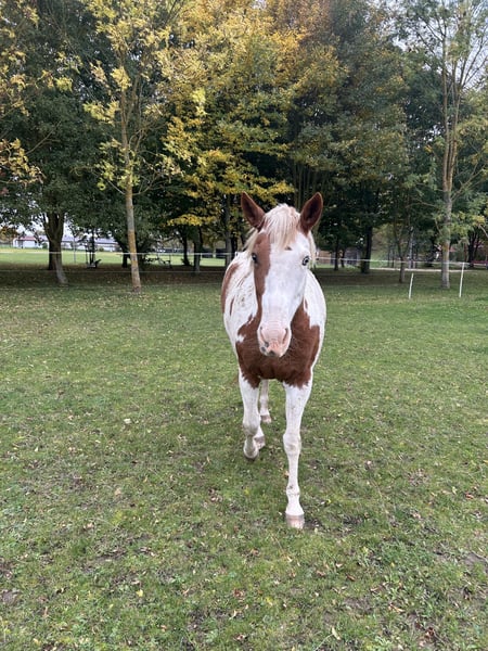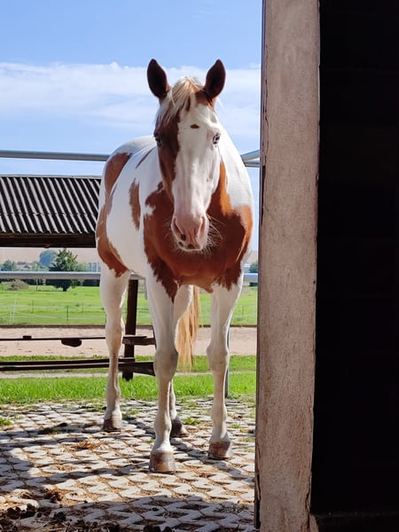 Für meine 12-jährige, 1,56 m große Paint Horse Stute Diamond suche ich schweren Herzens ein passendes und liebevolles Zuhause. Sie wird western geritten, ist arbeitswillig, fein zu reiten und liebt abwechslungsreiche Beschäftigung wie Training im Sattel, Bodenarbeit, Handarbeit, Ausritte oder Freiarbeit. Unter dem Sattel ist sie äußerst fleissig und lernt sehr schnell dazu. Diamond hat APHA-Papiere und ist mit ihrer sorrel tovero Farbe und dem blauen Auge ein echter Hingucker. Kein Anfänger- oder Kinderpferd – Diamond ist charakterstark, sensibel und braucht eine erfahrene Bezugsperson mit Westernreiterfahrung. Mit ihr kann man durch Dick und dünn gehen und sie sollte unbedingt weiter gefördert werden. Im Oktober 2024 wurde bei ihr equines Asthma diagnostiziert, 04.2025-10.2025 war sie zur Kur an der Nordsee – mit großem Erfolg! Sie ist wieder fit, voller Energie, toll bemuskelt und ein bisschen dick vom guten Küstengras; daran arbeiten wir jetzt wieder :-) Sie ist bereit für einen Neustart in einem staubfreien Offenstall (ohne Stroh) mit Heulagefütterung und täglicher Bewegung. Aufgrund des Asthmas wird regelmäßige Bewegung (5-7x pro Woche empfohlen!). Aufgrund heller Haut neigt sie bei starker Sonne zu Sonnenbrand – UV-Decke und UV-Maske sind vorhanden und damit lebt sie entspannt und zufrieden. Sie ist herdenverträglich und kennt gemischte Gruppen. Diamond ist beschlagen, und sie sollte auch beschlagen bleiben. Gegen Aufpreis kann das komplette Equipment mitübernommen werden: maßangepassten Equiflex-Sattel (2020, 2024 überarbeitet) und Pad, Trense, Halfter, UV-Schutz, Decken, Gamaschen, Hufglocken, Putztasche, Sattelständer, etc. Kein Notverkauf – nur in beste Hände! Platz definitiv vor Preis, auch ein zur Verfügung stellen möglich mit späterer Kaufoption. Ein Kennenlernen ist nach Absprache möglich. Bei einem Käufer aus der Gegend könnte sie auch im aktuellen Zuhause (Heulage, Strohfrei, Offenstall, viel Bewegungsmöglichkeit und tolle Stallgemeinschaft) verbleiben - hier hat sie alles was sie braucht und fühlt sich wohl. **** Ich könnte Bände schreiben zu diesem wundervollen Pferd, welche mein absolutes Traumpony ist. Gerne erzähle ich Dir persönlich mehr und beantworte alle möglichen Fragen.