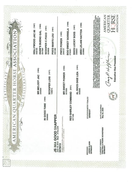 Name: Shelly Chic Olena Geboren: 18.07.2013 Rasse: American Paint Horse (APHA, eingetragen im Herdbuch des PHCG) Farbe/Muster: Sorrel Tobiano Geschlecht: Stute Abstammung (Auszug) • Vater: Sun Olena Chic – Enkel von Smart Chic Olena • Mutter: Kings Power Lena – Enkelin von Fritz Power Zucht- und Gesundheitsstatus • Trächtig seit: Mai 2025 • Bedeckt von: Quarter Horse Hengst JS Ima Good Snapper (Rappe letzten Bilder, als Veredler im Herdbuch des PHCG anerkannt) o Väterliche Linie: In Good Tune – Hollywood Jac 86 o Mütterliche Linie: Red Shirley Command – Fritz Power • Nachzucht: großrahmige, muskulöse Fohlen, korrekt im Gebäude • Vererbung: Nachkommen stehen am Hof und können besichtigt werden • Geburten: stets komplikationsfrei, nimmt sehr zuverlässig auf Nutzung & Charakter • Früher geritten, aufgrund einer Verletzung nicht mehr reitbar • Ansonsten gesund und voll zuchteinsatzfähig • Sehr umgänglich, liebevoll, tolle Muttereigenschaften Tel. 01707725929