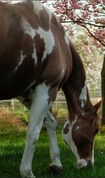 Naam: Shelly Chic Olena Geboortedatum: 18-07-2013 Ras: American Paint Horse (APHA, geregistreerd in het stamboek van PHCG) Kleur/Patroon: Sorrel Tobiano Geslacht: Merrie Afstamming (uittreksel) • Vader: Sun Olena Chic – kleinzoon van Smart Chic Olena • Moeder: Kings Power Lena – kleindochter van Fritz Power Fok- en gezondheidsstatus • Drachtig sinds: mei 2025 • Gedekt door: Quarter Horse hengst JS Ima Good Snapper (zwart op laatste foto's, als veredelaar erkend in het stamboek van PHCG) o Vaderslijn: In Good Tune – Hollywood Jac 86 o Moederslijn: Red Shirley Command – Fritz Power • Nageslacht: grootramige, gespierde veulens, correct in bouw • Erfelijkheid: Nakomelingen zijn op de boerderij en kunnen worden bezichtigd • Geboortes: altijd zonder complicaties, zeer betrouwbaar drachtig • Een veulen aan de voet kan ook worden bezichtigd en aangeschaft Gebruik & karakter • Vroeger bereden, door een blessure niet meer berijdbaar • Verder gezond en volledig fokgeschikt • Zeer sociaal, liefdevol, geweldige moederkwaliteiten Tel. 01707725929