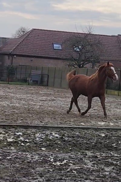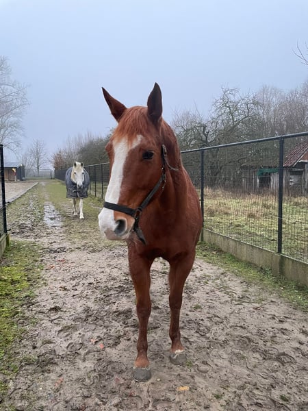This mare is no longer suitable for heavier work, which is why she is being offered as a surrogate mare, companion horse, for groundwork, or as a horse to occasionally go on light rides with. 1m60-65 Very well-behaved under saddle and in handling. Stands quietly. No problems with the veterinarian or the farrier. Can be kept both in a stable or out in the pasture.