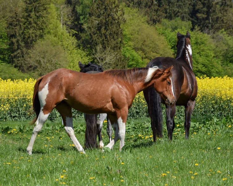 Hallo, sehr freundliche Paint Horse Stute " Indians Little Peppy - aka Peppy" mit korrektem Gebäude, solidem Fundament und einem unerschrocken und aufgeschlossenen Charakter sucht ab sofort jemand Neues in ihrem Umfeld. Sie wird später eine tolle Partnerin für Freizeit und Sport. Sie ist dem Menschen sehr zugewandt und freundlich. Daten zu Peppy: Rasse: American Paint Horse Geschlecht: Stute Geburtsdatum: 02.05.2024 Farbe: Sorrel Tobiano 7 Panel N/N über Eltern Geschätztes Endmaß: ca. 150-152 cm Dicke und viel Mähne, stabil gebaut. Abstammung: Vater: Indian Bigstep, erfolgreich geshowt in Reining, Stockmaß 1,54 m Mutter: Charmed Witch josie, Stockmaß 1,47 m Peppy ist APHA registriert und das CoR liegt vor. Der Equidenpass vom PHCG ebenfalls. Die Bilder sind im Alter von genau einem Jahr. Die letzten 3 Bilder zeigen sie im Fohlen Alter vom 4 Monaten. Aktuelle Bilder folgen die Tage. Mutter ist ebenfalls vor Ort zu besichtigen. Sie ist gesund und wächst artgerecht auf. Ist regelmäßig entwurmt und dem Hufschmied vorgestellt sowie geimpft. Sie kennt altersgerecht alle möglichen und im Alltag notwendigen Dinge. Sie ist ebenfalls schmied-und verladefromm. Transport könnte organisiert oder übernommen werden. Sie kann auch weiterhin hier bei uns im Stall bleiben. Bei ernst gemeintem Interesse und Fragen gerne melden unter 01732090733. ☺️ Beste Grüße ☺️