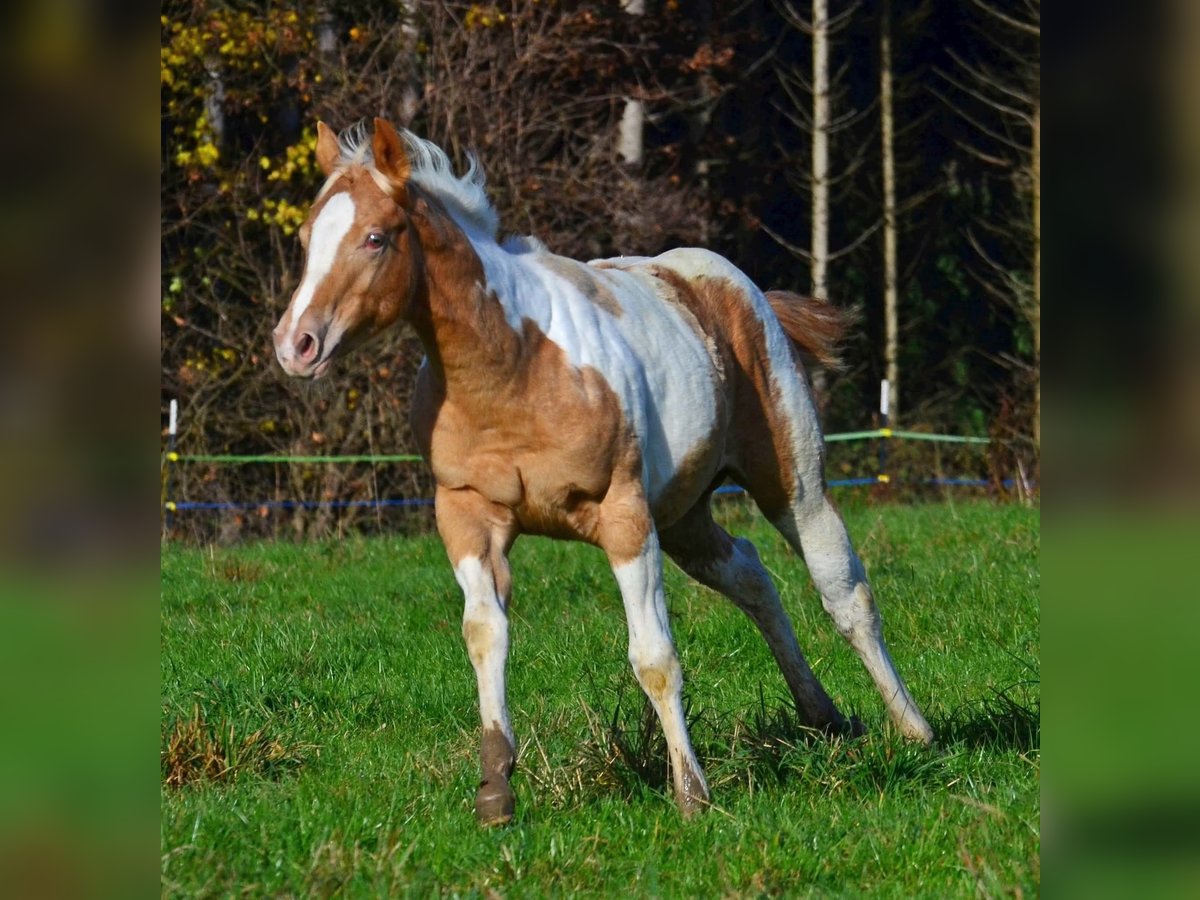 Babatte is a Paint Horse filly in Gold Champagne, homozygous for the Champagne gene. She was presented at the PHCG breeding show and received an impressive overall score of 7.95. She is 7 Panel N/N and naturally has full Paint papers. She is growing up in a large herd in a species-appropriate manner. Her character is golden, and she always wants to please. She loves to cuddle and seeks human closeness in a gentle way.