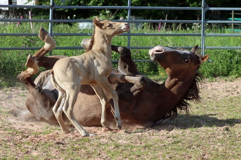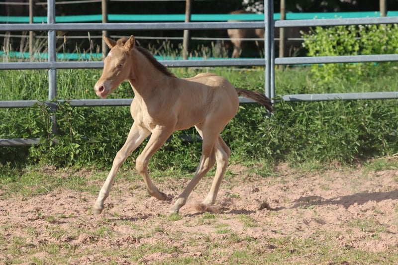 CHEYENNES VUDUGUNFIRE Amber Dun Champagne APHA Stute Geboren: 08.05.2025 Endgrösse ca 153 cm 7 Panel N/N Ee Aa Dd CHch