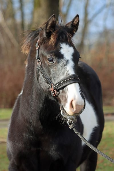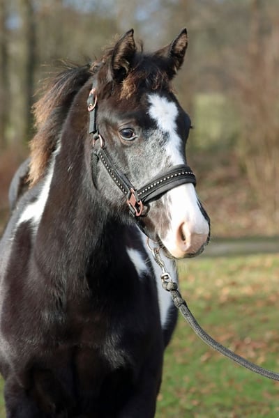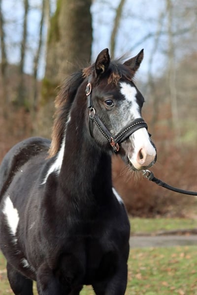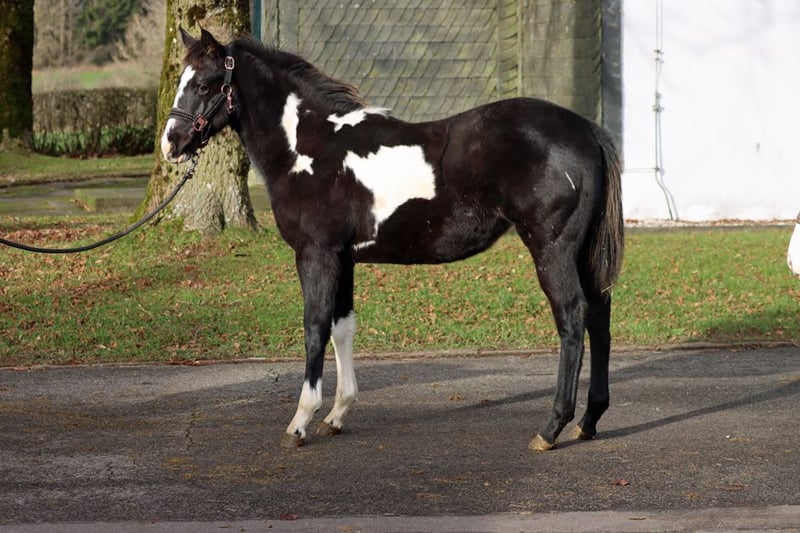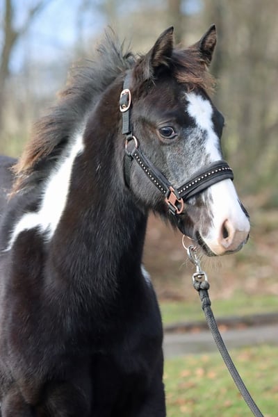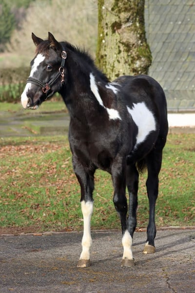 GEENA ENOLA BUENO Black Overo APHA Stute Geboren: 28.05.2025 Endgrösse: ca 153 cm 6 panel n/n Ee aa n/LWO Kein Schimmel Träger