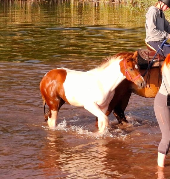 Hallo mein Name ist Okies Diamond Lady ❤️ und ich bin ein ganz tolles Paint Horse Mädchen. Mein stolzer Papa ist der Paint Horse Hengst Dancing Boys Okie und meine Mama ist Docs Magic Kathie, die mir auch immer erzählt dass nicht nur mein Papa schon oft im Rampenlicht stand sondern auch mein Opa ein ganz besonderer Hengst war. Meine Zweibeiner finden das ich sehr mutig bin und meinen ich bin ein echtes Powerpaket. Ich bin halt in meiner Kindergarten Gruppe gerne die Klassensprecherin... aber das liegt einfach daran das ich die größte und die stärkste bin und naja ich bin halt auch noch schneller, die Inteligenteste, und kann am besten posen, naja ich bin halt einfach die beste und meine Mama ist halt auch die coolste von allem ! Sie sagt mir halt immer dass ich vor nichts Angst haben muss! Die meiste Zeit verbringe ich mit meinen 3 Kindergarten Freunden, meinen Tanten und meinem Ziehpapa Tru Docscherokee der total coll ist und ganz viel mit uns unternimmt und natürlich auch mit meiner Mama auf der Weide. Aber ich darf auch immer mal wieder meine Mama auf Ausritten oder auf dem Reitplatz begleiten. Dass macht total Spaß, ich darf hier auch schon mutig voraus laufen zumindest mach ich das immer einfach. Zwei mal haben wir auch schon gebadet und ich liebe Wasser genau so wie meine Mama. Baden ist einfach toll. Ich kenne auch schon zweibeinige Kinder, Hunde,die sind toll denn da kann man immer hinter her flitzen, Traktoren die immer frisches Wasser und Heu auf die Weide bringen. Motorrad Fahrer und Quads haben wir auf Ausritten auch schon kennen gelernt und ich war schon auf einer Fohlenschau. Dass war toll, mit Musik und vielen Menschen mit Cowboy Hut die mich die ganze Zeit angesehen haben. Ich glaube sie mochten mich, da die mich ganz oft angelächelt haben und ich dann eine tolle Schleife und eine Urkunde bekommen habe. Meine Mama sagt dass es bald Zeit für mich wird einen ganz eigenen 2 Beiner für mich zu suchen. Darauf freue ich mich schon sehr. Also eigentlich ist mir egal wie mein späterer Zweibeiner aussieht er soll mutig sein wie ich ... ohh ein Herdenchef wäre cool mit dem ich gemeinsam die Welt erobern kann, Unternehmens Lustig und er muss Wasser mögen...ich liebe Wasser, vielleicht auch mit mir später Berge klettern geht oder Abenteuer Spielplätze, die sind toll. Mama sagt auch immer das Papa ein tolles Reining Pferd ist und Sie und Opa liebend gerne Kühe getrieben hat. Aber sie meint, sowas lernt man noch nicht im Kindergarten sondern erst wenn ich in die Schule komme aber vielleicht kann mir das ja dann mein eigener Zweibeiner alles zeigen. Ach so ich weiß nicht ob das wichtig ist... ich esse gerne aber das ist ja normal...ich will ja auch groß und so stark wie mein Papa werden. Vielleicht so 1.54m. Halt eine stattliche Stute und Herdenchefin wie meine Mama wäre toll. Meine Zweibeinigen Freunde meinen ich habe eine ganz tolle und besondere Persönlichkeit aber ich kann ja auch nichts dafür das mich eben alle mehr beachten und Mama sagt immer man soll zeigen was man kann. Ach so meine Zweibeiner hier Zuhause im Stall meinen wenn mir mein neuer Zweibeiner gefällt darf ich entweder umziehen oder auch noch zur weiteren Aufzucht in meinem Kindergarten hier bleiben und..... mein Zweibeiner kann mich auch in Ratenzahlung haben wie auch immer viel wichtiger ist das er mich liebt und mit mir durch Dick und Dünn gehen möchte. Ach so ich soll noch sagen ich bin 7 Panel N/ N und ein PHCG Prämien Fohlen aber da hab ich keine Ahnung was das heißt... Hauptsache du hast mich lieb . Besuchen kannst du mich in 06420 Könnern oder Ruf einfach bei mir im Stall an unter der 0172-3731301