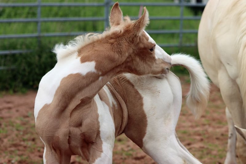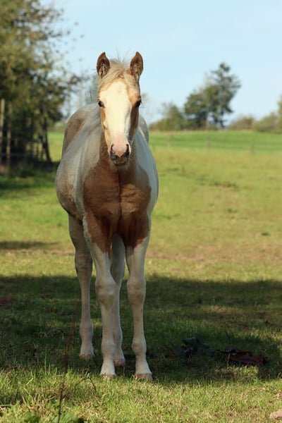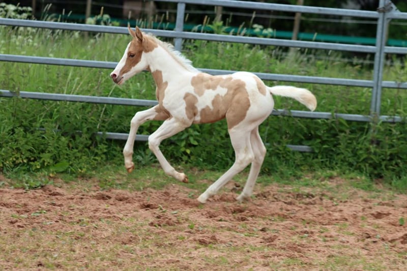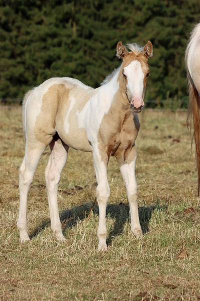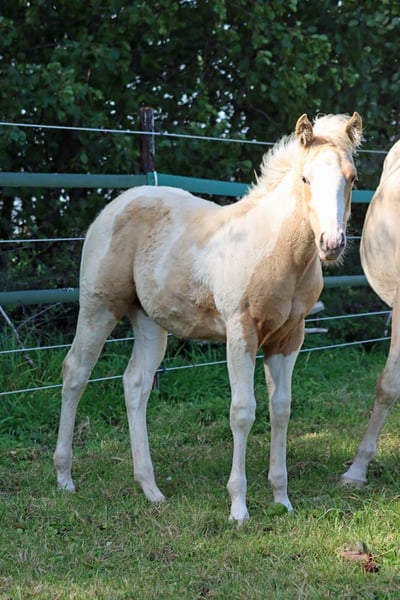 CHEYENNES HARRAHS Palomino Tobiano APHA Stute Geboren: 20.05.2025 Endgrösse ca 155 cm 7 Panel N/N ee aa CRcr Tt