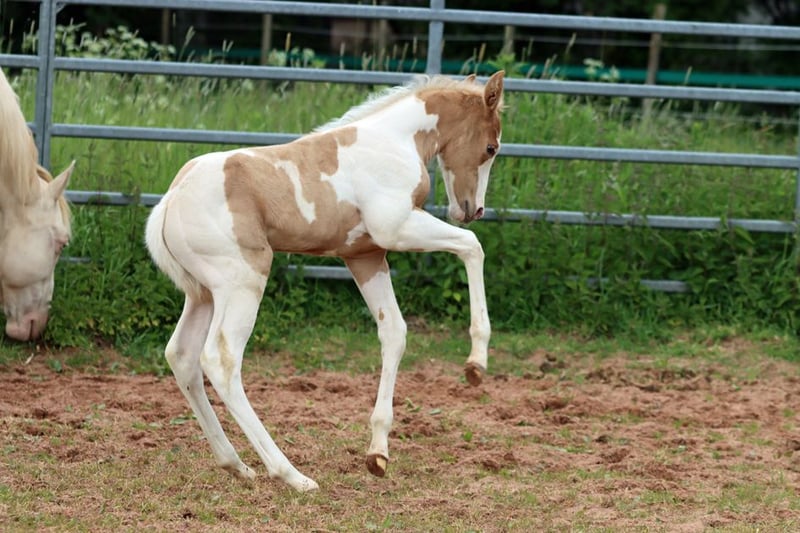 CHEYENNES HARRAHS Palomino Tobiano APHA Mare Born: 20.05.2025 Expected height approx. 155 cm 7 Panel N/N ee aa CRcr Tt