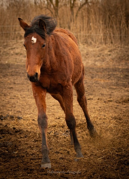 McRobins Magic Bar ("Maggy") ist am 14.04.25 geboren und sucht jetzt ihr neues Zuhause. Maggy ist eine korrekt gebaute und sehr kräftige kleine Stute, die neugierig und aufgeschlossen die Welt erkundet.