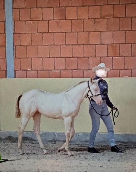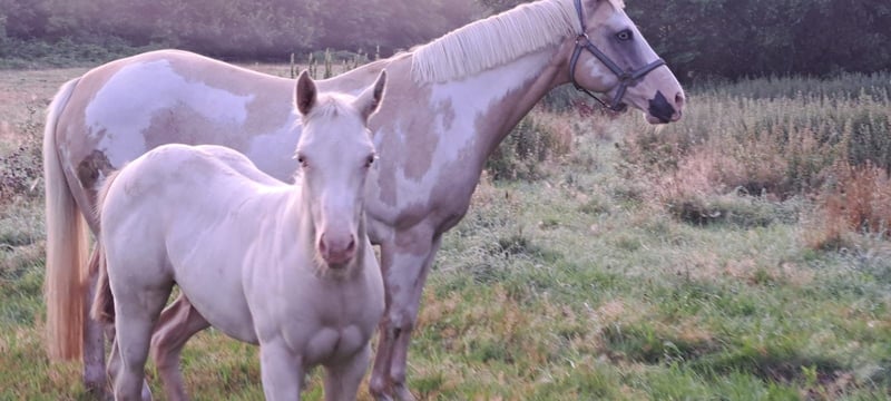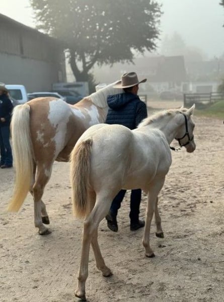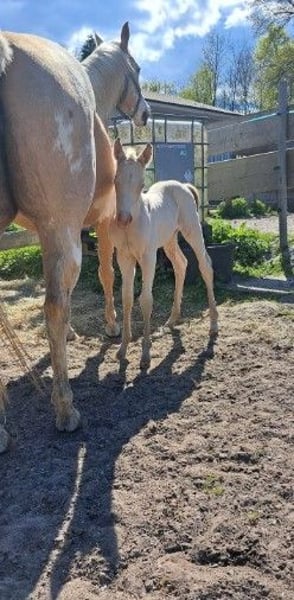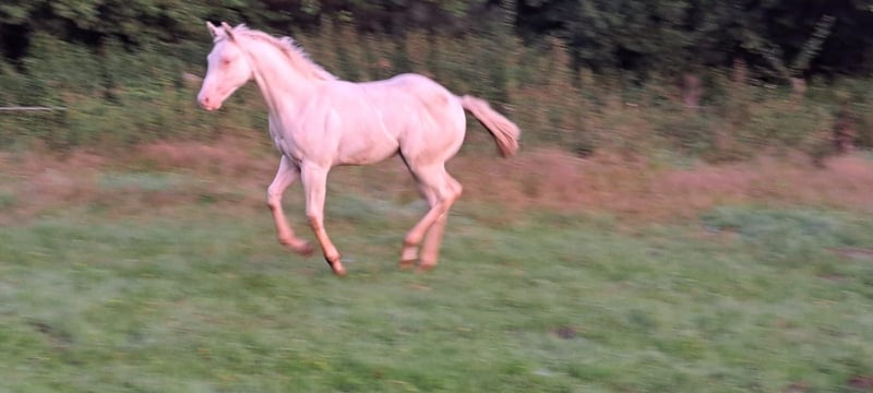 …en ik zoek mijn toekomstige favoriete persoon! Ik ben geboren op 22-04-2025 en verken sinds die tijd de wereld altijd open en nieuwsgierig. Mijn kleur is smokey cream en ik ben geregistreerd bij de APHA en het PHCG. Ik ben zeer vriendelijk, mensgericht, halsterführig en geduldig bij de smid. Het rijden met de trailer is voor mij geen probleem. Natuurlijk ben ik gechipt, gevaccineerd en ontwormd. Op de keuring in Bremen/Ritterhude ben ik met een score van 8,15 uitgeroepen tot veulenkampioen. Hiermee heb ik me gekwalificeerd voor het nationale veulenkampioenschap in Darmstadt, waar ik 7e ben geworden. Wil je me graag leren kennen? Neem snel contact op met mijn eigenaar Frank Heldt via 0176-34507184.