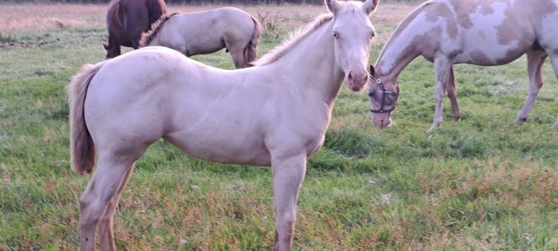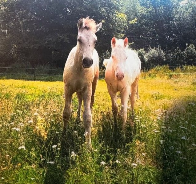 …e sto cercando il mio prossimo compagno speciale! Sono nato il 22 aprile 2025 e da allora esploro il mondo con curiosità e apertura. Il mio colore è smokey cream e sono registrato presso l'APHA e il PHCG. Sono molto socievole, affettuoso con le persone, gestibile al cavalletto e educato dal maniscalco. Il traino non è un problema per me. Naturalmente sono dotato di microchip, sono vaccinato e dewormed. Alla mostra di stalloni a Brema/Ritterhude sono stato il puledro vincitore con un punteggio di 8,15. Questo mi ha qualificato per il Campionato Nazionale dei Puledri a Darmstadt, dove ho ottenuto il 7° posto. Se vuoi conoscermi, contatta subito il mio proprietario Frank Heldt al numero 0176-34507184.
