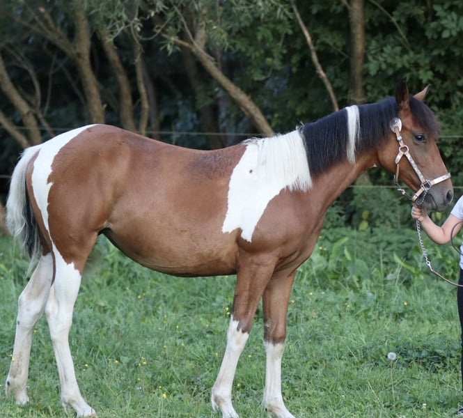 For sale: a beautiful American Paint Horse mare! Born on July 30, 2024. She comes from excellent bloodlines, is healthy, has strong hooves, and is very well-behaved. She learns quickly and has started work on the lunge line. She is desensitized to all kinds of spooks, is comfortable walking into rivers, and is accustomed to transportation. Farrier and veterinarian visits are no problem. She is located on the border of Poland and Slovakia. Please contact me privately for more information.