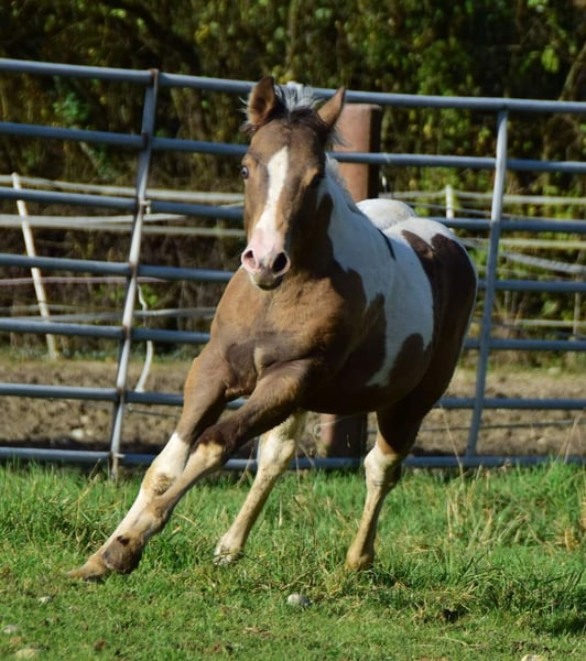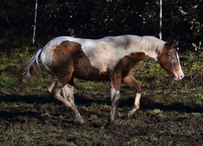 Miral est Amber Champagne, une agile géniale et un caractère très gentil et doux. Elle est pure pour le gène Tobiano et ne donnera jamais que des poulains colorés. C'est une Paint Horse avec un papier complet et 7 panels N/N. Elle grandit ici dans un grand troupeau, dans le respect de son espèce. Elle est naturellement vermifugée et vaccinée régulièrement, avec papier et passeport.