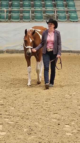 Guaranteed Noworry ist eine am 01.04.2024 geborene Paint Horse Stute in der Farbe Sorrel Tobiano, die mit einem geschätzten Endmaß von ca. 158?160 cm überzeugt. Bereits als Fohlen konnte sie mit einer Wertnote von 83,70 % als Siegerin auf der Fohlenschau begeistern und unterstreicht damit ihre außergewöhnliche Qualität. Sie präsentiert sich als bildhübsche, typvolle junge Stute mit viel Präsenz und Ausdruck. Ihr Gebäude ist korrekt und harmonisch, sie steht auf einem stabilen Fundament mit sehr guten Gelenken und zeigt sich für ihr Alter bereits weit entwickelt und gut bemuskelt. Sie ist gesund und 6-Panel n/n getestet. Charakterlich überzeugt Noworry durch ihre menschenbezogene, liebe und zugleich sehr selbstbewusste Art. Sie ist neugierig, sensibel und fein in der Kommunikation, dabei lernwillig und intelligent. In neuen Situationen verhält sie sich souverän und gelassen, ist gut sozialisiert und problemlos in die Herde integrierbar. Altersbedingt zeigt sie sich gelegentlich keck und ein wenig frech, bleibt dabei jedoch stets händelbar und eignet sich für erfahrene Pferdemenschen, die Freude an der weiteren Förderung eines jungen Pferdes haben. In ihrer bisherigen Ausbildung kennt sie das Fohlen-ABC, ist halfterführig und hat bereits erste Erfahrungen im Showbereich gesammelt. Zudem ist sie mit Bodenarbeit vertraut und beherrscht die Grundlagen in Schritt und Trab an der Longe. Ihre bisherigen Erfolge sprechen für sich: Neben dem Titel der Fohlenschausiegerin 2024 konnte sie sich als Futurity Champion PHCG 2025 sowie als Deutscher Meister in der Yearling Halter Klasse (German Paint 2025) behaupten. Abstammungsbedingt (Guaranteed Invitation x Lazy Loper) bringt sie beste Voraussetzungen für eine Karriere im Pleasure- oder Allroundbereich mit und überzeugt durch überdurchschnittliche Gangarten sowie ihre besondere Ausstrahlung, mit der sie überall auffällt. Sie kennt sowohl Offenstallhaltung als auch die Unterbringung in einer Paddockbox, genießt täglichen Weidegang bei jedem Wetter und ist im Umgang mit Tierarzt und Hufschmied absolut unkompliziert. Selbstverständlich wird sie regelmäßig geimpft und entwurmt. Die Abgabe erfolgt mit vollständigen APHA-Papieren sowie Equidenpass. Gesucht wird ein förderndes, erfahrenes Zuhause mit Herz und Pferdeverstand, das dieses besondere Nachwuchspferd weiter ausbildet und ihr großes Potenzial erkennt und nutzt. Guaranteed Noworry ist ein wundervolles, auffallend schönes Pferd, das ihrem zukünftigen Besitzer viel Freude bereiten wird und sowohl im Sport als auch in der Freizeit eine vielversprechende Zukunft vor sich hat.