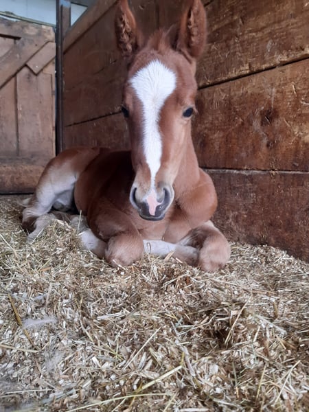 An exceptional Paint Horse mare, born in 2023, is for sale. With her fascinating chestnut coat, Velvet is a real eye-catcher and makes the hearts of all horse lovers beat faster. Our mare is not only a true beauty, but also a real cowhorse. Ideal for anyone looking for a horse to work with cattle or who simply appreciates a versatile and intelligent horse. She is well-mannered, friendly and has an even temperament. With her robust soundness and adaptability, she is suitable for a variety of equestrian sports. Her remarkable pedigree and outstanding qualities make her an ideal horse for ambitious riders and breeders alike. If you are looking for a horse with both beauty and performance, then our Paint Horse mare could be just what you are looking for. Grows up in a species-appropriate herd. Original APHA papers and equine passport About parents N/N Gladly by phone, email takes longer