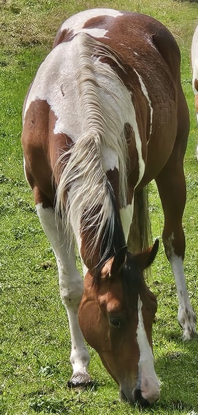 Zum Verkauf steht eine außergewöhnliche Paint Horse Stute mit beeindruckender Scheckung – ein absoluter Blickfang, der überall positiv auffällt. Eckdaten: Geburtsjahr: 2023 Stockmaß: ca. 150 cm Papiere: Original APHA-Papiere & Equidenpass Genetik: Über Eltern N/N Aufzucht: Wächst artgerecht in der Herde auf Besonderheiten: Spirit überzeugt nicht nur mit ihrer außergewöhnlichen Optik, sondern auch mit ihrem harmonischen Körperbau. Mit ihrem kompakten, aber dennoch großzügigen Stockmaß ist sie ideal für Reiter, die ein handliches, jedoch kräftiges Pferd suchen. Eignung & Potenzial: Diese junge Dame bringt viel Potenzial für die Zukunft mit – ob im Freizeitbereich oder für den Turniersport. Sie wartet auf einen Menschen, mit dem sie viele schöne Momente erleben und neue Herausforderungen meistern kann.