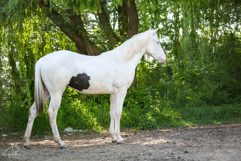 We reserve the right to adjust the price according to age and training. Quality over price. Hi, I am Aponi (Native American = Butterfly). I was born in April 2023 and I am a very sweet mare with a lot of "will to please." I really enjoy communicating in a gentle way and am particularly affectionate, willing to do almost anything for my human. Therefore, I am looking for an owner with a lot of heart and horse sense. My dad is the double-registered "Black Starbuck" (1.54). My father is Black Starbuck, a 154 cm tall Quarter Horse stallion with an excellent pedigree (Hollywood Dun It, Colonels Smoking Gun, Katie Gun ...) and my mother is a Magic On Ice daughter named "Magic Snoflower" (1.53). I am a Smokey Black Tovero filly with two bright blue eyes, with an Equine Passport and APHA papers, which I will bring along when I move. In terms of character, I am very sensitive and open, making me suitable for people who do not wish to be too dominant but prefer subtle communication. My new owner should have a gentle touch with me and enjoy cuddling, as well as explaining everything important in my training fairly; then my later training as a riding horse will surely be a lot of joy. At the moment, I live in a paddock trail facility and I enjoy my freedom. Within the herd, I am taught proper behavior and can explore my boundaries and romp around in the pasture. I wish for my future owner to maintain my freedom – I do not want to live alone in a (run-in) box with a small paddock and rationed hay. I would rather stay with my herd. Aponi is regularly dewormed, vaccinated, introduced to the farrier, and is now learning the basics of groundwork. We place great importance on our horses being well-mannered, easily manageable, and friendly. If Aponi has caught your interest, please write to us with your full name and your housing plans for more information. Please refrain from calling. Our horses are preferably placed in species-appropriate, box-free housing (open stable, paddock trail, or active stable) and loving hands. We do not sell to dealers. We do not send additional pictures and videos, but you are warmly invited to visit our website (www.harzhof-minsleben.de) or our Facebook page, which always contains current pictures.