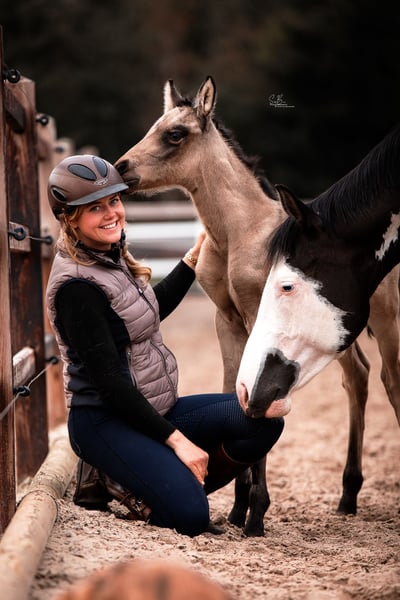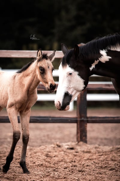 Georgia – junge Stute mit viel Ausstrahlung sucht ihren Menschen Georgia ist eine 3-jährige Stute, die bei uns geboren und aufgewachsen ist. Ihre Mutter ist ein Black Overo Paint Horse, ihr Vater ein falbfarbener Azteke – entsprechend bringt sie eine interessante und besondere Erscheinung mit. Im täglichen Umgang zeigt sie sich bei uns souverän und unkompliziert. Dinge wie Anbinden und Hufe geben kennt sie und lässt sich dabei entspannt händeln. Georgia ist noch nicht eingeritten. Sie wird bei uns regelmäßig als Handpferd mit ins Gelände genommen und kennt es, in Begleitung draußen unterwegs zu sein. In der Freiarbeit zeigt sie bei uns viel Freude und ein besonderes Talent. Zudem präsentiert sie sich sehr menschenbezogen, anhänglich und verschmust. Bei uns wirkt sie wie ein sehr passendes Pferd für jemanden, der sich den Wunsch erfüllen möchte, ein junges Pferd selbst oder in Begleitung auszubilden und gemeinsam zu wachsen. Für Georgia wünschen wir uns ein Zuhause bei Menschen, die Freude daran haben, sie weiter zu fördern und sie behutsam auf ihrem weiteren Weg zu begleiten. Wenn du ein junges Pferd suchst, das durch Charakter, Talent und Herz überzeugt – dann ist Georgia vielleicht genau die Partnerin, die du suchst. Ihr findet uns in 49779 Oberlangen, die genaue Adresse schicke ich euch gerne nach einem persönlichen Gespräch zu. Ihr könnt mich unter der Handynummer 01624348386 erreichen.
