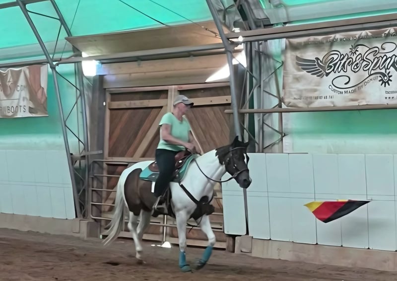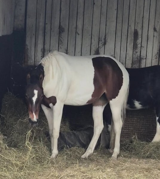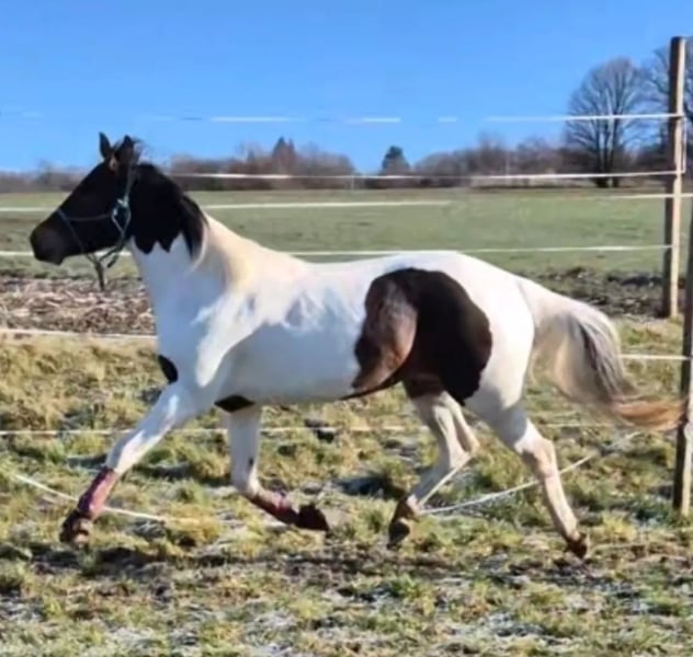 Biete hier meine tolle 3,5 jährige Paintstute zum verkauf an. Sie ist 2022 geboren, ca. 155cm groß und als Absetzer zu uns gekommen. Sie bringt eine super Arbeitseinstellung mit gutem Vorwärtsdrang mit und läuft sicher alle drei Grundgangarten, geht alleine sowie in der Gruppe ins Gelände. Kennt es gebisslos sowie auch mit Gebiss geritten zu werden. Sie ist verladefromm und kennt es auch in fremden Hallen geritten zu werden. Ein tolles Pferd was mit weiterer Ausbildung sicher auch eine gute Figur auf dem Tunierplatz macht. Sie hat keine Paintpapiere nur einen Pass der FN. Vater ist bekannt und ist der Quarterhengst Give Me A Shot. Sie wird regelmäßig entwurmt und dem Hufschmied vorgestellt. 6 Paneltest vorhanden, GBED/N, der Rest N/N. Infos unter 017623287698 auch gerne per whatsapp
