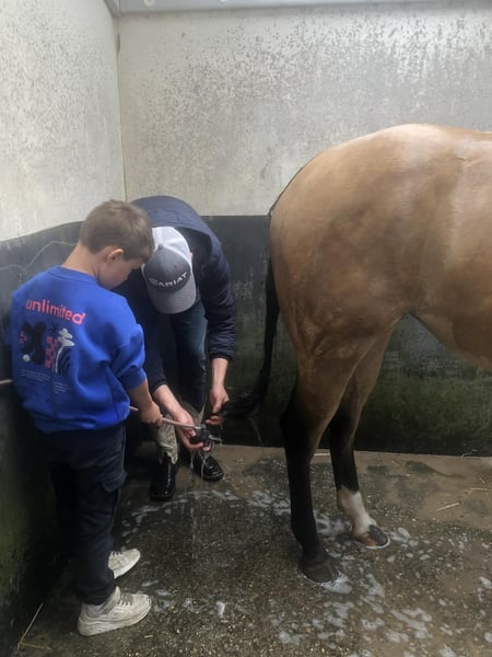 AS Wimpys First Doll (Charlie) Pedigree : Wimpys Little Colonel × The Great Guntini Année de naissance : 2021 Couleur : Isabelle Test 5-panel : N/N Enceinte de : GP A Spook in Town – prévue pour mi-avril 2026 En raison de circonstances personnelles de la propriétaire, nous avons malheureusement décidé de mettre cette douce jument, Charlie, en vente. Charlie est née chez nous, son historique complet est donc connu. Charlie est une jument sincère et agréable à manipuler. Elle a toujours été bien entretenue : correctement vaccinée, vermifugée, parée, et récemment examinée par le dentiste. En selle, elle est facile à monter, aussi bien en manège qu’en extérieur lors de balades. Elle a été monté en équitation western de base. Nous attendons son poulain par GP A Spook in Town à la mi-avril 2026 ; elle est tombée enceinte dès la première tentative. En raison de sa grossesse, Charlie n’a pas été montée ces deux derniers mois. L’année dernière, Charlie a déjà donné naissance à un magnifique poulain par Smart N Sparkin. C’est une mère douce et facile, également très simple à manipuler avec un poulain à ses côtés. Petite remarque concernant la radiographie, sans aucune importance clinique. Charlie sera vendue uniquement à une famille sérieuse et adaptée. Pour plus d’informations, veuillez contacter le +31 6 30915229.