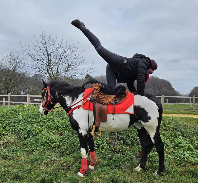 Kaila, klacz paint – łagodna, spokojna i wszechstronnie użyteczna Wiek: 5,5 lat Wysokość w kłębie: około 152 cm Cena: 7600 zł AKU: dostępne ✨ Opis: Ta pięknie umaszczona klacz paint zachwyca zrównoważonym usposobieniem i przyjaznym, miłym charakterem. W codziennym kontakcie jest posłuszna, chętna do współpracy i bezproblemowa. Pomimo młodego wieku, prezentuje się spokojnie, opanowanie i odporna na stres. Pod siodłem pracuje kooperatywnie, chętna do nauki i niezawodna. Cieszy się z jazdy, jest uważna i zapewnia pewne, relaksujące odczucia podczas jazdy. Szczególnie w rekreacji i jeździe westernowej jest wszechstronnie przydatna. 🐎 Idealna dla: Jeźdźców i jeźdźczyń, którzy poszukują niezawodnego, przyjaznego i łatwego w obsłudze partnera rekreacyjnego. Dzięki odpowiedniemu wzrostowi świetnie nadaje się także dla młodzieży lub mniejszych dorosłych. Idealna na rekreację, wycieczki i rajdy. 🩺 Nasze konie są regularnie: – odrobaczane – poddawane obróbce u kowala – kontrolowane osteopatycznie 🛍 Sklep na gospodarstwie: Westernowe siodła, uzdy i akcesoria 🚛 Transport i sprzęt na życzenie w atrakcyjnych cenach Nasza oferta: ✅ 3-miesięczna gwarancja wymiany ✅ Jazda próbna: 35 €, każde kolejne konie 25 € (odliczane przy zakupie tego samego dnia) ✅ 100 € natychmiastowego rabatu przy odbiorze/transporcie tego samego dnia ✅ Osobiste i szczere doradztwo 📞 Zapytania wyłącznie telefonicznie: 0171 – 4001968 🕗 Kontakt codziennie od 8 do 20 ⚠️ Brak kontaktu e-mailowego i WhatsApp ⚠️ Wszystkie informacje bez gwarancji