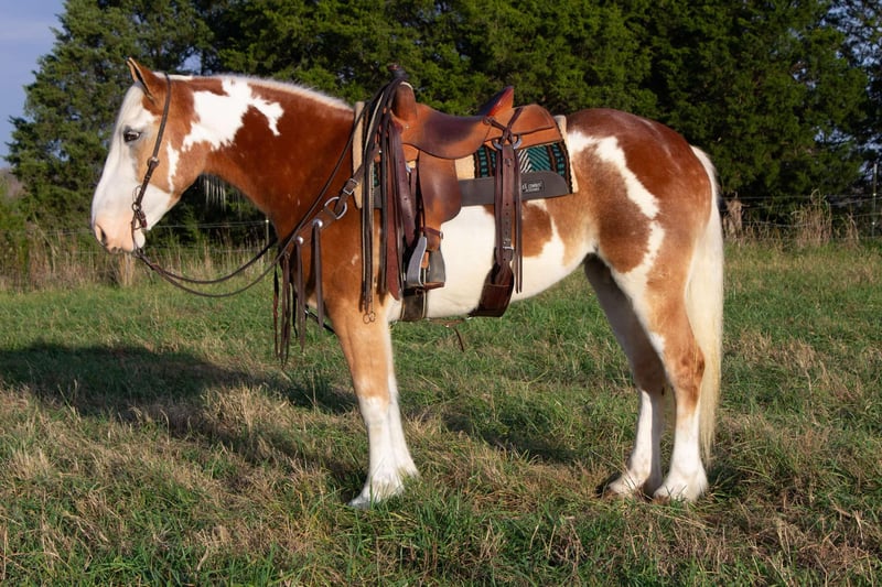 ONLINE AUCTION Place your bids at www.PlatinumEquineAuction.com Starting Bid $3500 Auction ends December 22nd, 2024 Need a new saddle? Check out White Rock Saddles on our website or Facebook! Talk about a big boned draft cross that rides and moves like a quarter horse! Daisy Mae is a 2020 draft cross mare standing 16hh. She is an absolute sweetheart and has an in your pocket personality. Daisy doesn’t have a mean bone in her body and truly wants to be your best friend. She stands for mounting, saddling, bathing, grooming, farrier etc. She loads and hauls well. She can be kept out in the field with other horses or in the barn in a box stall. Daisy picks up both her leads with ease and has a true one step short lope. She is soft in the bridle and works well off leg pressure. She has a soft and easy backup and a nice quick stop. She has been extensively trail ridden and crosses water, logs or any thing else in her path. Daisy has also been exposed to the arena obstacles and does them all. We have used her for ranch work also such as checking cows and repairing fences. Daisy can work all day and still keep a good attitude. One of the coolest things about Daisy is that she can also be drove. We have used her in the buggy and carriages. She is not scared of traffic. She was raised by the Amish and has been used in all types of farm machinery. Daisy has great ground manners and is not pushy. She is broke to flags, tarps, whips. Around our place she is always the one that gets picked first to do any job. Daisy is currently being trained to lay down on command and is coming along nicely. Daisy Mae lives in Greensburg Ky. Call Alex Pearl with any questions 270-234-4148. ONLINE AUCTION Place your bids at www.PlatinumEquineAuction.com Starting Bid $3500 Auction ends December 22nd, 2024 Need a new saddle? Check out White Rock Saddles on our website or Facebook!