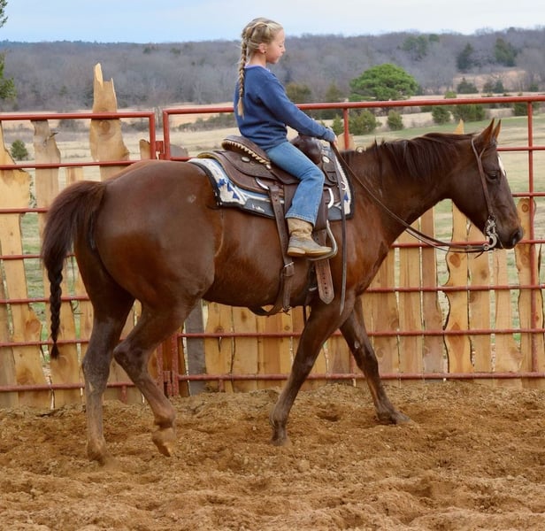 ♦️ 𝐭𝐡𝐞 𝐒𝐞𝐩𝐭𝐞𝐦𝐛𝐞𝐫 𝑺𝒆𝒍𝒆𝒄𝒕 ♦️ Happening now thru MONDAY | SEPTEMBER 8th - Available EXCLUSIVELY on HorseBid's website! For more details and to register visit: www.Horsebid.com CONSIGNOR CONTACT: JB Horsemanship LLC 970-549-6172 LOCATION: McCurtain, OK BREED: APHA REGISTERED: Yes REGISTERED NAME: Sensations Hot Misty COLOR: Chestnut HEIGHT: 15 AGE: 7 GENDER: Mare "SENSATIONS HOT MISTY aka Tina 🌟2018 Chestnut Mare By Majic In Motion x Mistys Hot Sensation 🌟APHA registered 🌟Stands at 15.0 hands 🌟100% sound 💜 Tina is the perfect all-around ranch and family horse. She is a sweet, stocky registered Paint mare that is happy to pack anyone around, yet fancy and talented enough to excel competitively. Tina is currently working as an outstanding ranch sorting horse, who is beginning to become a money earner at sorting competitions in Central Oklahoma. She has been owned by the same family for nearly 4 years and enjoyed her time with them and their two teenage girls. Due to no fault of her own, Tina is in search of a new home as the family is now getting out of riding as their girls have graduated. She is very smooth to ride, with forward willingness, and is the same horse with every level of rider. If you need a reliable horse to complete the task, Tina is the perfect option. She’s a steady, trustworthy horse that can tolerate gunfire, withstand bull whip cracking, excels and enjoys ranch and cow work. She has perfect ground manners, is great to saddle, clip, bath, farrier, load, haul and tie! Up-to-date on all deworming, vaccinations and coggins test. Tina has had two foals, took on first try, had textbook easy births and is an amazing mother. Would make a GREAT broodmare if new owner chose to go that route. 🌟No maintenance required. Easy easy keeper! Consigned with Jerry Bontrager of JB Horsemanship LLC. Located in McCurtain, OK. Feel free to call 970-549-6172 for more details or schedule a visit to come try her!"