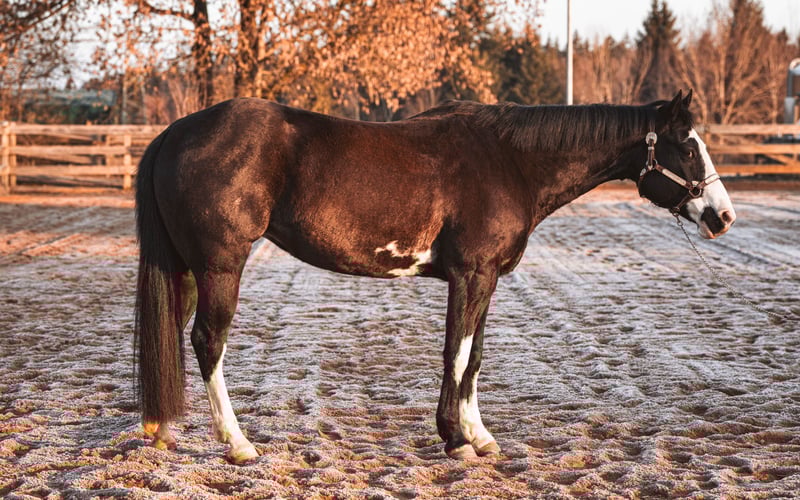 Wij zoeken voor onze BS Coosaders Boogie een nieuw, liefdevol thuis. Boogie is een merrie geboren in 2018, een Paint Horse met een schofthoogte van ongeveer 1,52 m. Ze is een nakomeling van Colonel Coosader en sinds 2022 in ons bezit. Ze loopt hoefbevangen en heeft tot nu toe geen hoefijzers nodig gehad. Ze wordt regelmatig gevaccineerd en ontwormd. In de winter staan onze paarden ’s nachts in de stallen, in de zomer genieten ze van 24 uur weiland. Met Boogie heb ik mijn Western rijbewijs 4 behaald en heb ik deelgenomen aan wedstrijden in klasse 4, waar ik in de disciplines Pleasure, Horsemanship, Showmanship en Ranch Riding ook placeringen behaalde. De wedstrijdsfeer heeft ze altijd kalm en zelfverzekerd doorstaan. Cursussen en intensieve training zijn echter niet haar favoriete bezigheden. Ze gaat liever het terrein in, maar doet graag mee aan de basiswerkzaamheden. Ze voelt zich vooral prettig bij rustige buitenritten. Zowel in een groep als alleen is ze goed hanteerbaar. Boogie heeft een vaste vertrouwenspersoon nodig, ze is zeker een ‘one-man’ paard en is aanvankelijk terughoudend tegenover onbekende ruiters. In 2024 heeft Boogie een prachtig hengstveulen gekregen. Ze heeft bij de eerste poging met vers sperma meteen drachtig geworden en zowel de dracht als de bevalling probleemloos doorstaan. Daarom kunnen wij haar ook goed in de fokkerij blijven inzetten (5-panel N/N). Helaas hoest Boogie bij slecht hooi. Tijdens de zomermaanden vertoont ze geen symptomen. In de winter- en voorjaarstijd kan de hoest echter optreden bij vochtig, koud of mistig weer. Daarom wordt ze bij voorkeur als fok- of recreatiepaard aangeboden. Wij wensen haar een thuis toe met een vaste vertrouwenspersoon die haar de tijd geeft en zich aan de omstandigheden aanpast. Voor meer informatie sta ik graag klaar voor een persoonlijk gesprek.